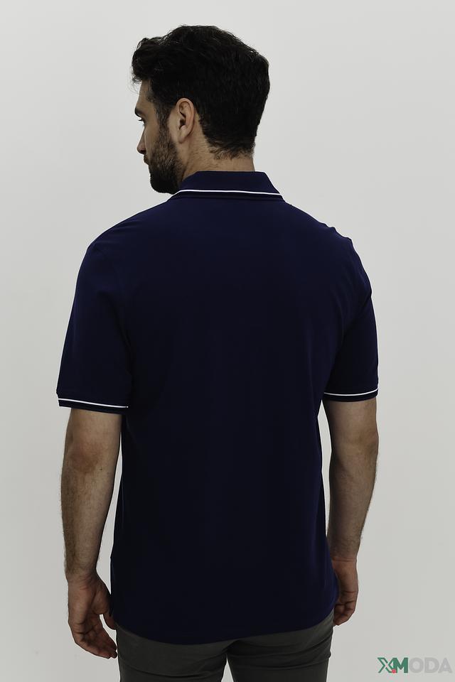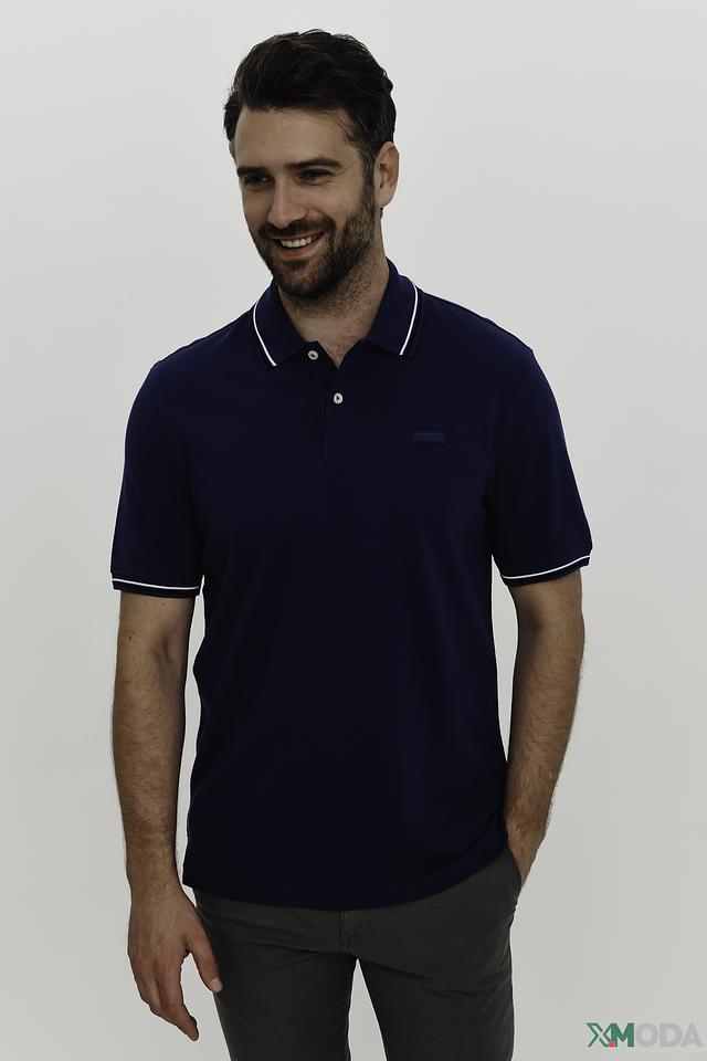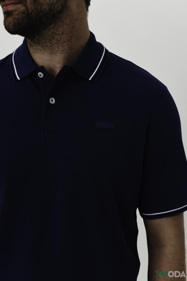 Мужское поло Bugatti синего цвета с белой отделкой на воротнике и рукавах. Классический крой и 100% хлопковый состав обеспечивают комфорт и удобство в носке. Состав: хлопок 100%