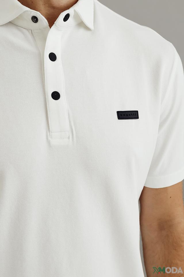 Мужское поло от Bugatti выполнено в классическом белом цвете. Изготовлено из мягкого и приятного к телу хлопка с добавлением эластана, что обеспечивает комфорт при носке и сохранение формы.