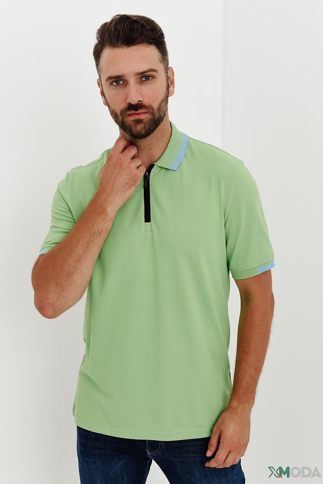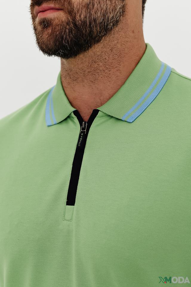 Мужское поло Bugatti лаймового цвета с короткой молнией на воротнике. Изготовлено из комфортного сочетания хлопка, полиэстера и эластана, обеспечивающего удобную посадку и практичность в уходе. Состав: хлопок 52%, полиэстер 44%, эластан 4%