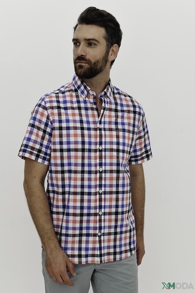 Мужская рубашка Bugatti с коротким рукавом выполнена в яркой клетчатой расцветке. Модель из 100% хлопка обеспечит комфорт и удобство в жаркую погоду, а классический крой подойдет для создания повседневных образов. Состав: хлопок 100%