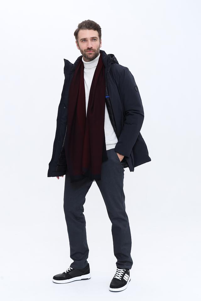 Шарф имеет прямоугольную форму и классический дизайн, который подойдет для мужчин, ценящих элегантность и стиль. Текстура ткани слегка рельефная, что добавляет шарфу визуальный интерес.