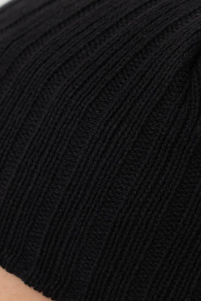 Шапка имеет классический дизайн без лишних деталей, что делает её универсальной и подходящей к любому образу. Чёрный цвет шапки легко сочетается с верхней одеждой разных стилей и оттенков.