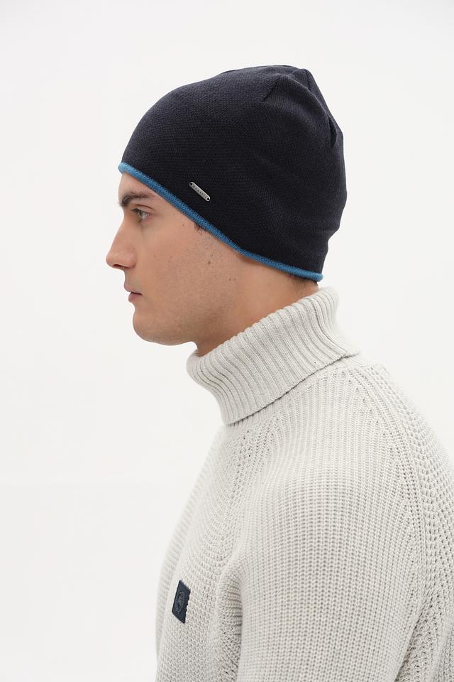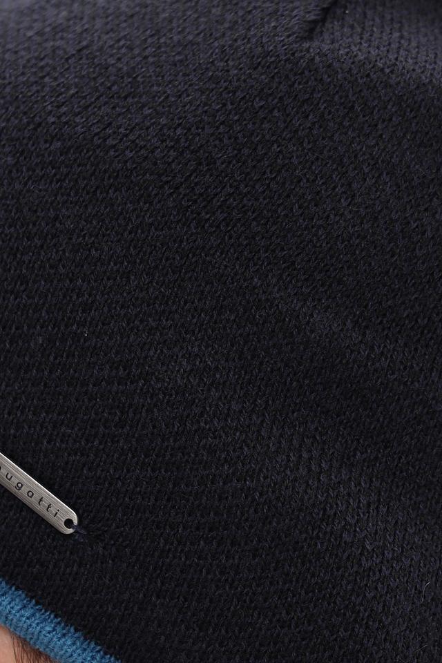 Мужская шапка Bugatti ACC тёмно-синего цвета с бирюзовой подкладкой. Изготовлена из 100% полиакрила, обеспечивающего комфорт и тепло. Стильный дизайн с металлическим логотипом. Состав: полиакрил 100%