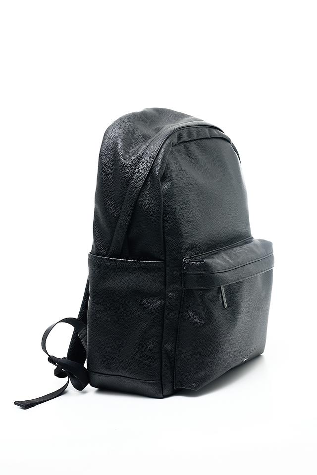 Рюкзак изготовлен из прочного полиуретана, что обеспечивает его долговечность и устойчивость к износу. Текстурированная поверхность материала придает изделию элегантный вид.