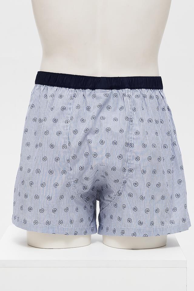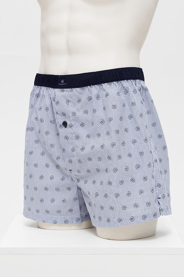 Представляем мужские трусы от бренда Bugatti ACC. Модель выполнена в синем цвете с вертикальной полоской и геометрическим принтом.