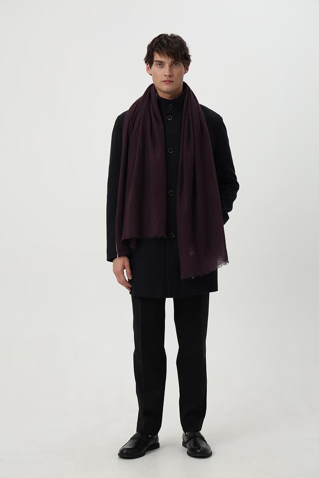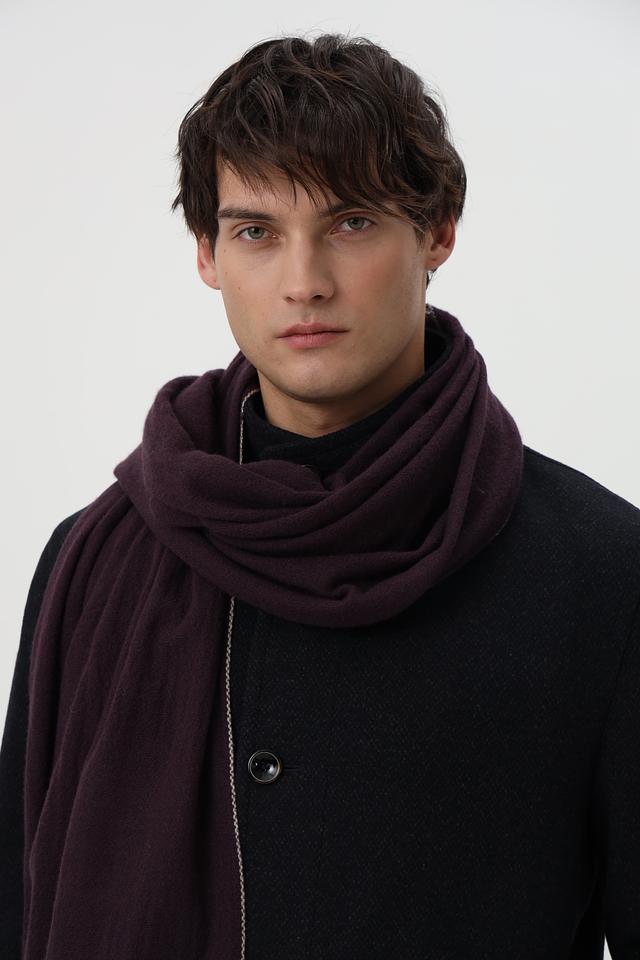 Шарф имеет прямоугольную форму и выполнен из мягкой и приятной на ощупь ткани с добавлением шерсти. Текстура материала позволяет создать уютный и комфортный образ.