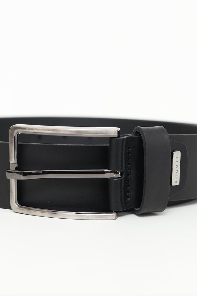 Ремень оснащён классической металлической пряжкой серебристого цвета, которая надёжно фиксирует ремень на талии. На ремне присутствует небольшое тиснение с логотипом бренда Bugatti, что подчеркивает его премиальный статус.