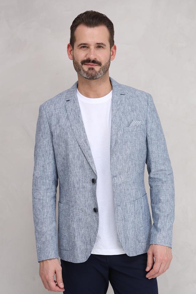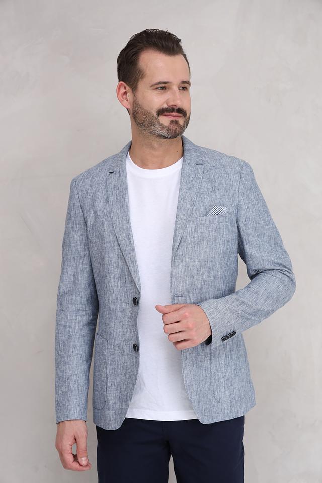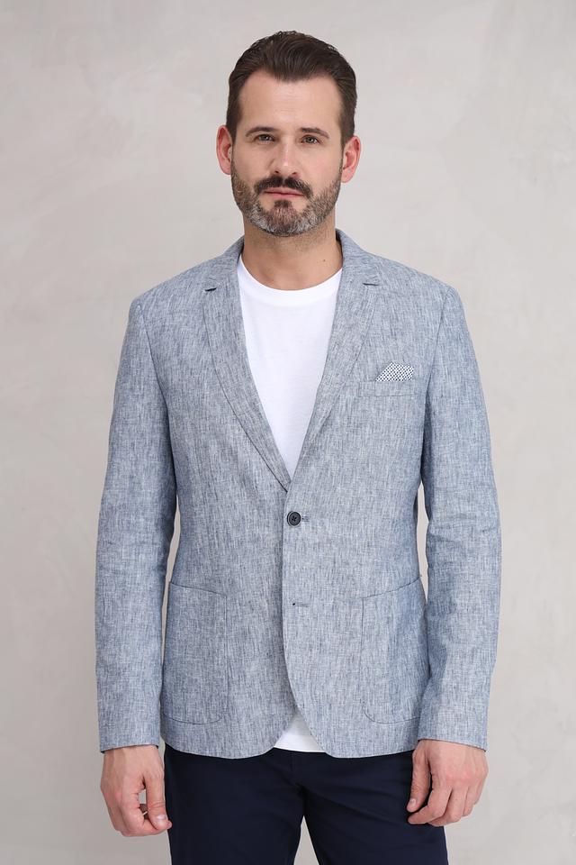 Стильный мужской пиджак Calamar голубого цвета выполнен из льна с добавлением полиэстера. Классический крой и удобная посадка делают его идеальным выбором для создания элегантного образа. Состав: лен 55%, полиэстер 45%