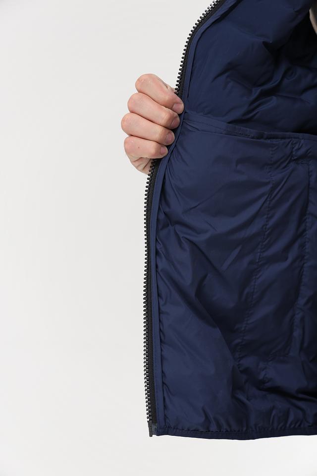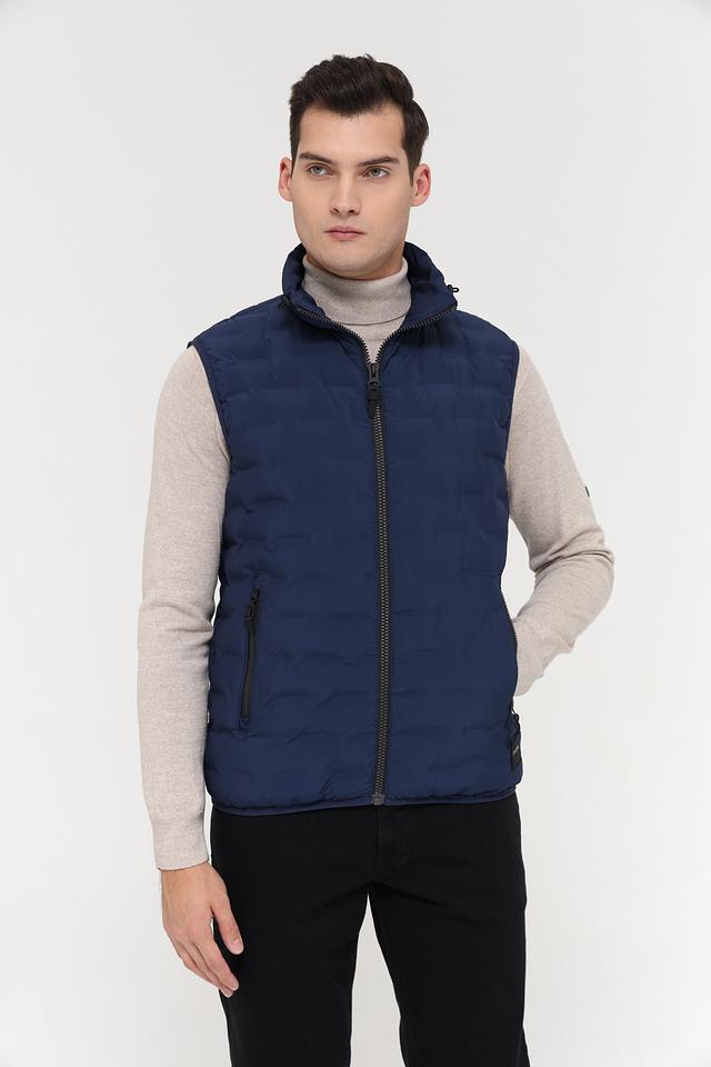 Модель оснащена двумя боковыми карманами на молнии, что делает ее практичной для хранения необходимых мелочей. Синий цвет жилета универсален и легко сочетается с различными элементами гардероба.