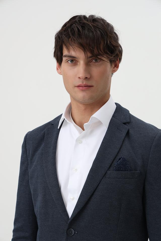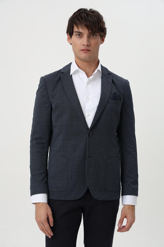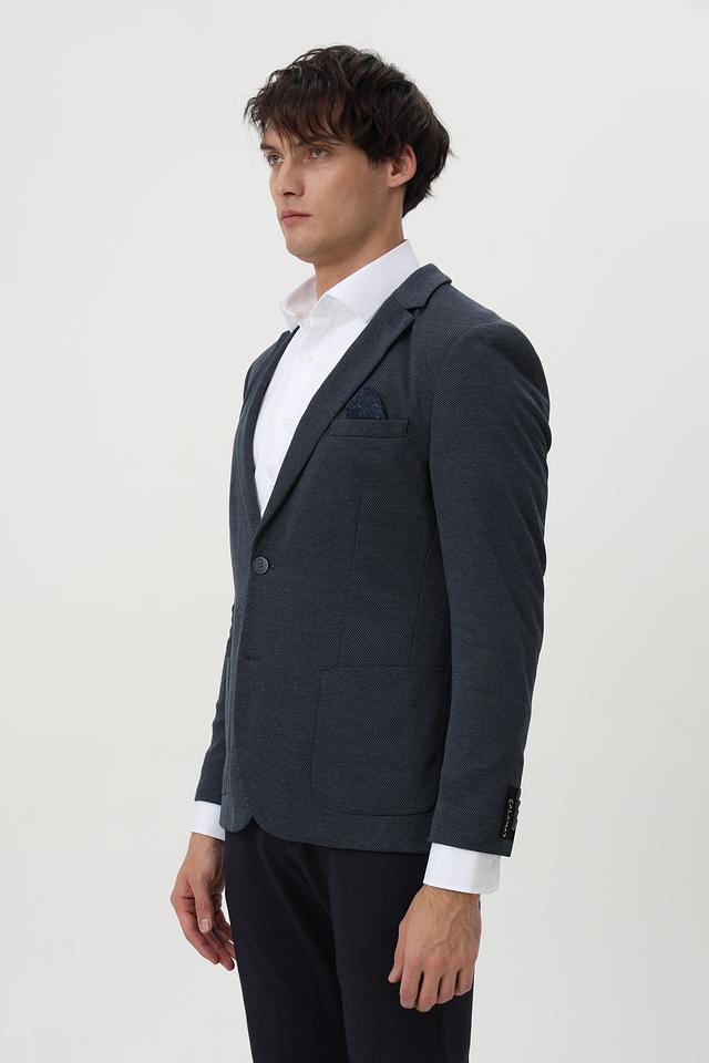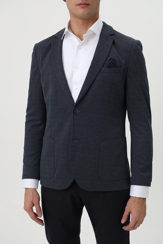 Мужской пиджак Calamar синего цвета с мелким клетчатым рисунком. Модель выполнена из смесового материала с добавлением полиэстера и вискозы, обеспечивающего комфорт и практичность. Состав: полиэстер 73%, вискоза 26%, эластан 1%