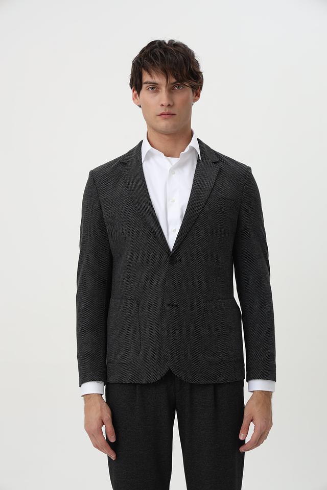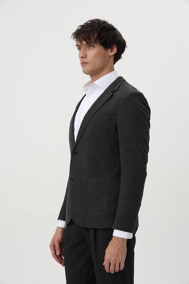 Мужской пиджак от бренда Calamar – это идеальное решение для создания стильного и современного образа. Пиджак выполнен в сером цвете с мелким геометрическим принтом, который добавляет оригинальности.
