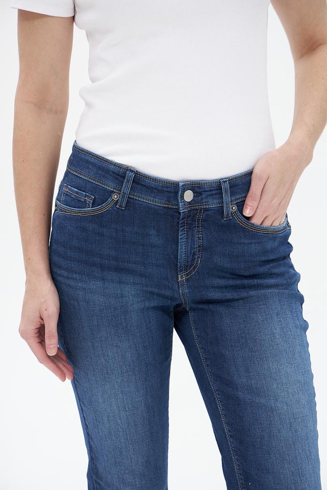 Женские джинсы Cambio классического синего цвета с эффектом утяжки. Модель выполнена из хлопка с добавлением эластана для комфортной посадки и сохранения формы. Идеальный выбор для повседневного образа. Состав: хлопок 92%, эластомультиэстер 6%, эластан 2%