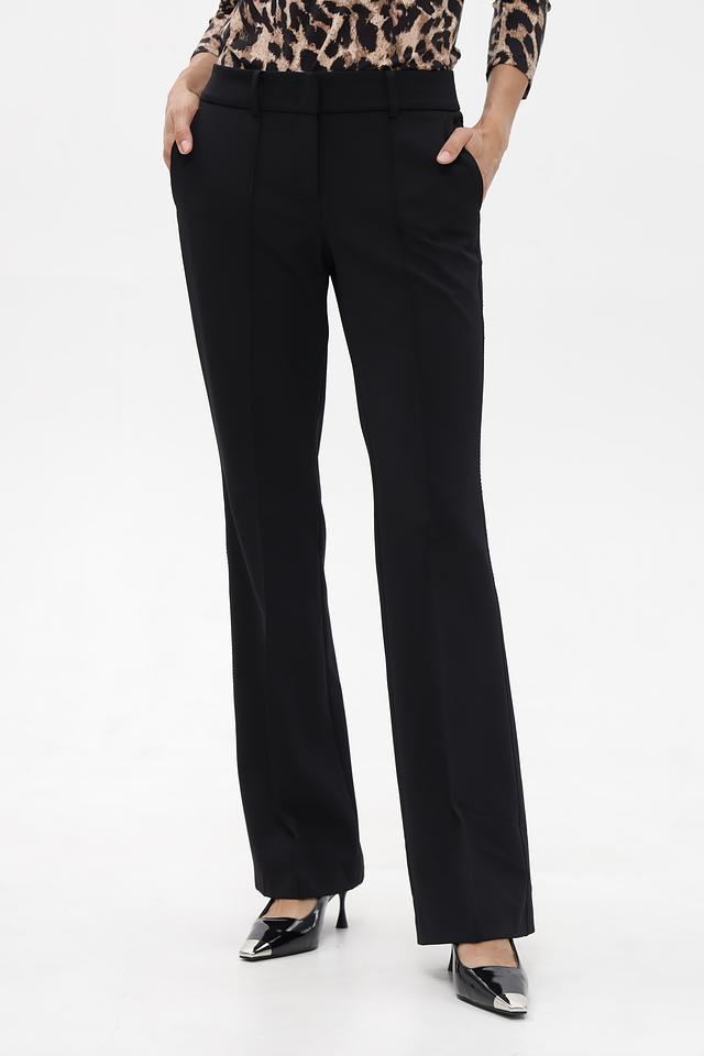 Чёрные брюки клёш от Cambio из полиамида с эластаном – стильное и комфортное решение для создания элегантного образа. Модель с классической посадкой и застёжкой на молнию и пуговицу. Состав: полиамид 88%, эластан 12%