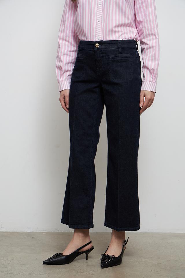 Джинсы Cambio тёмно-синего цвета с клешем — стильное и комфортное решение для повседневного образа. Классический крой и качественный деним обеспечивают удобную посадку и долговечность. Состав: хлопок 93%, полиэстер 5%, эластан 2%