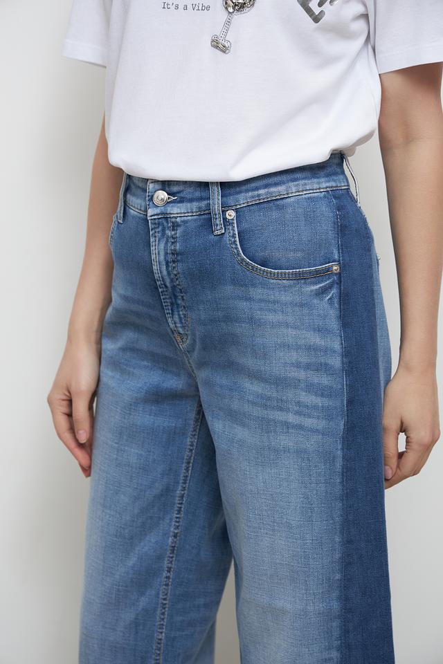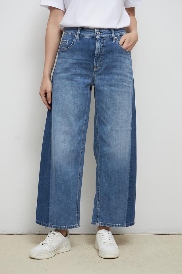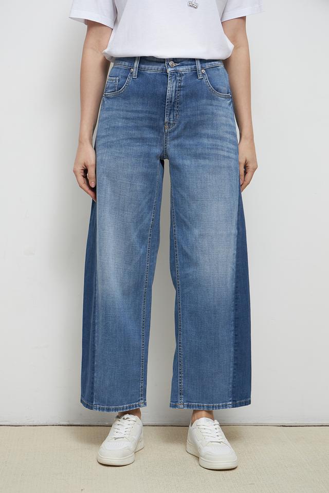 Женские джинсы Cambio голубого цвета с широкими штанинами и высокой посадкой. Модель выполнена в классическом дениме с эффектом потертости, обеспечивающим комфорт и стильный вид. Состав: хлопок 92%, эластомультиэстер 6%, эластан 2%