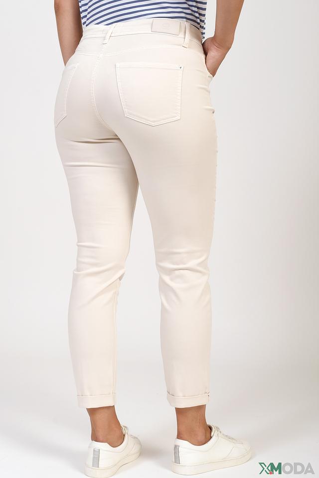 Брюки имеют классический крой и стандартную посадку по талии. Их бежевый цвет легко сочетается с различными элементами одежды, позволяя создавать разнообразные образы. Манжеты на брючинах добавляют непринужденности и стиля.