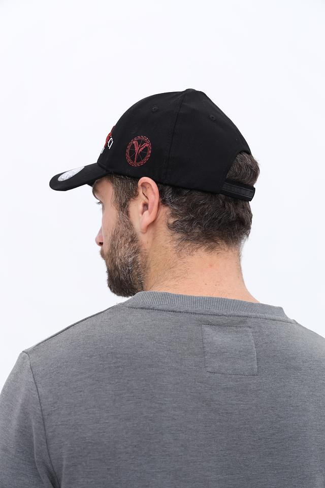 Передняя часть украшена вышивкой с логотипом Carlo Colucci и надписью Milano 1978, выполненной в красных тонах. Сбоку располагается небольшой металлический логотип бренда. Задняя часть регулируется пластиковой пряжкой, что позволяет подогнать размер под индивидуальные параметры.