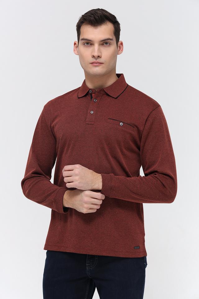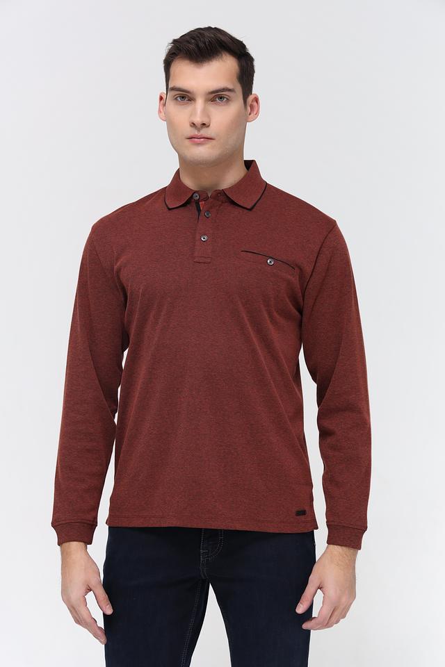 Мужское поло Casa Moda терракотового цвета с длинным рукавом. Изготовлено из хлопка с добавлением полиэстера для комфорта и износостойкости. Состав: хлопок 62%, полиэстер 38%