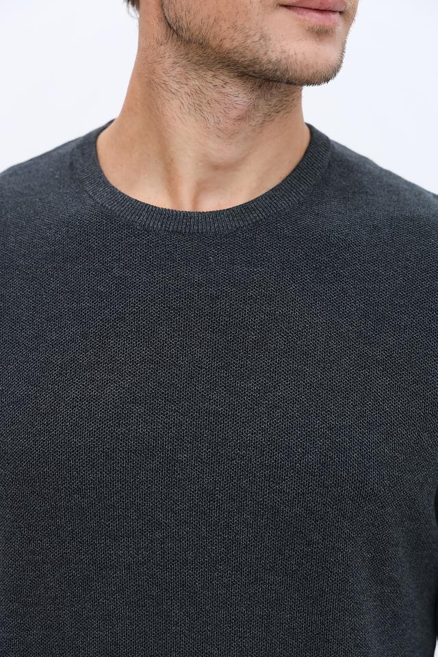 Джемпер имеет классический крой с круглым вырезом горловины и длинными рукавами. Текстура вязки придает изделию аккуратный и современный вид.