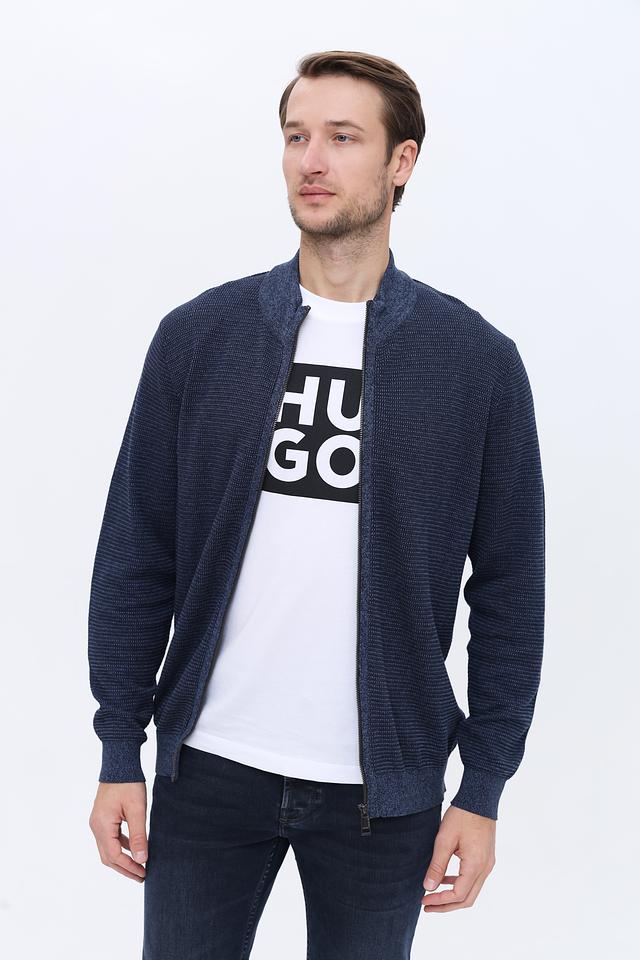 Мужской кардиган Casa Moda синего цвета с застежкой на молнии и текстурной вязкой. Модель выполнена из 100% хлопка, обеспечивая комфорт и удобство в носке. Идеально дополнит повседневный образ. Состав: хлопок 100%