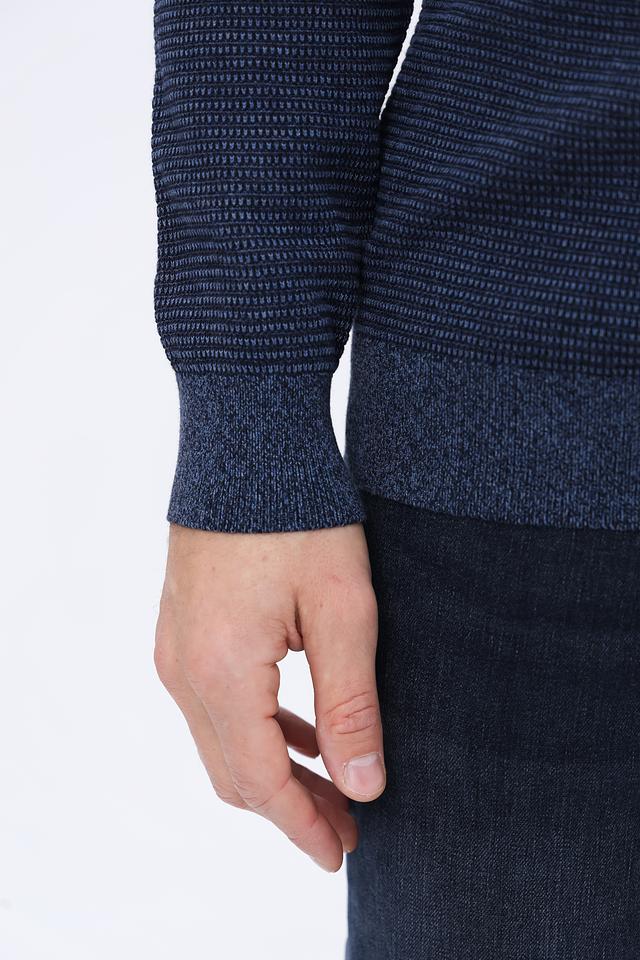 Кардиган имеет классический крой с застежкой на молнии, что позволяет регулировать степень тепла. Текстурная вязка придает изделию интересный вид и выделяет его среди других моделей. Синий цвет кардигана универсален и легко сочетается с различными элементами гардероба.