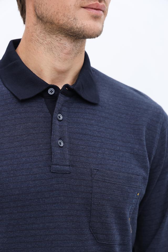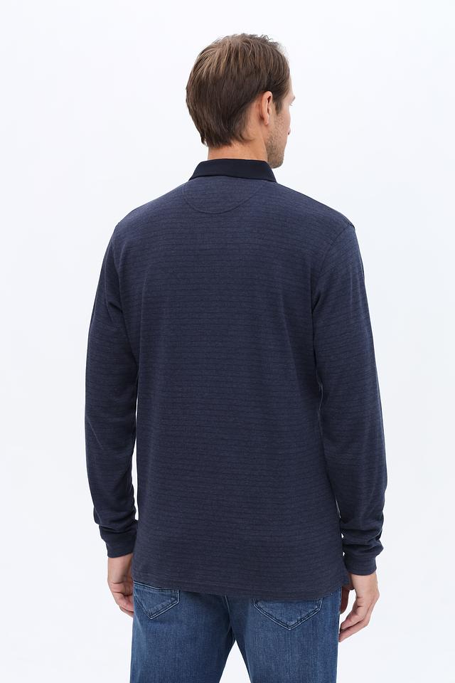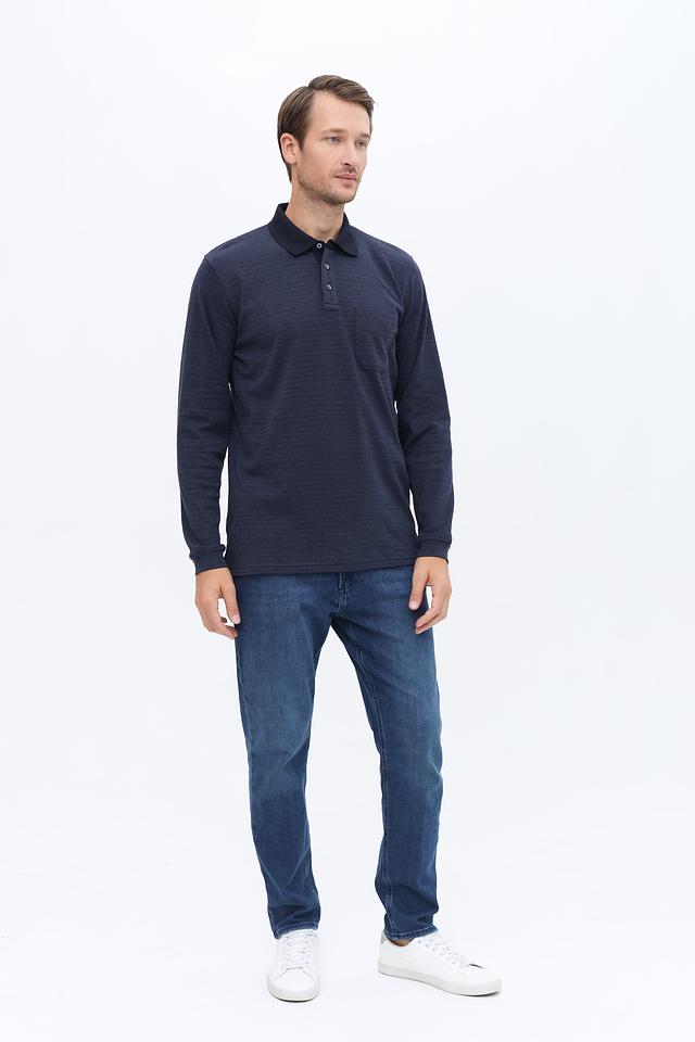 Мужское поло Casa Moda темно-синего цвета с длинным рукавом и фактурной текстурой. Изготовлено из хлопка с добавлением полиэстера для комфорта и долговечности. Отличается стильным дизайном и удобным кроем. Состав: хлопок 76%, полиэстер 24%