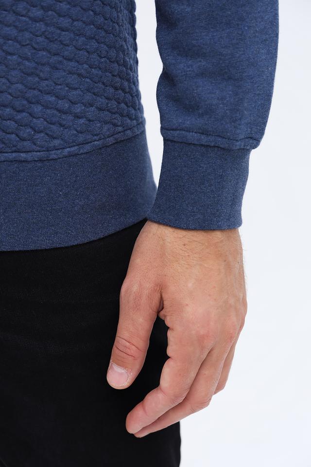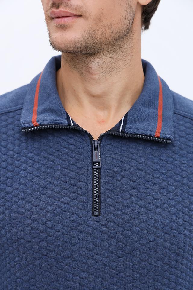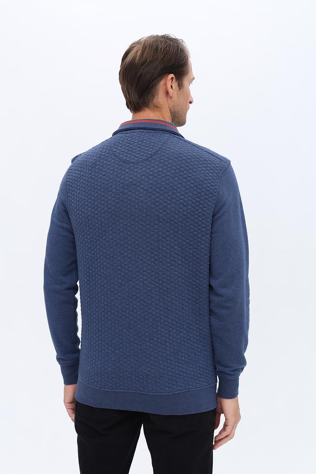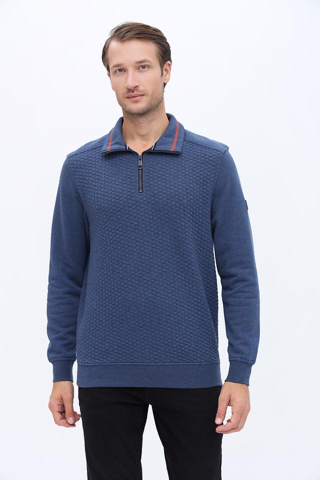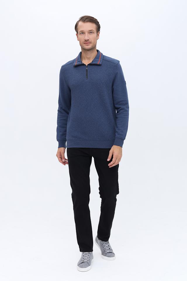 Синий джемпер Casa Moda с короткой молнией и текстурной фактурой. Изготовлен из мягкого хлопка с добавлением полиэстера и эластана для комфорта и сохранения формы. Отличный выбор для создания стильного повседневного образа. Состав: хлопок 53%, полиэстер 45%, эластан 2%