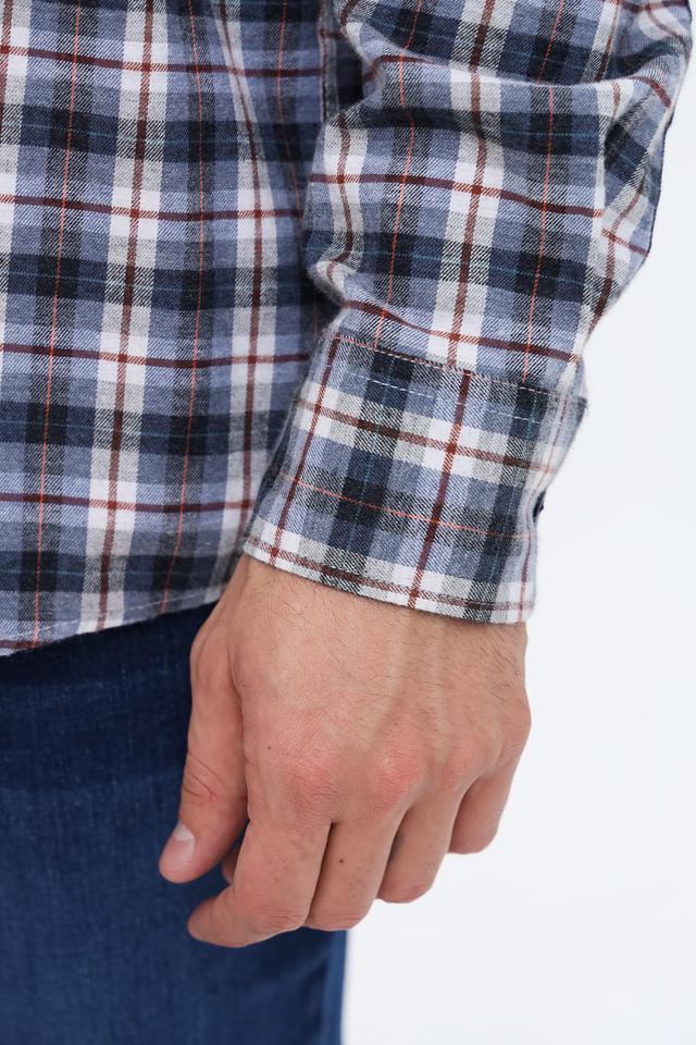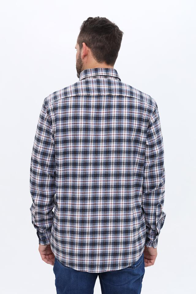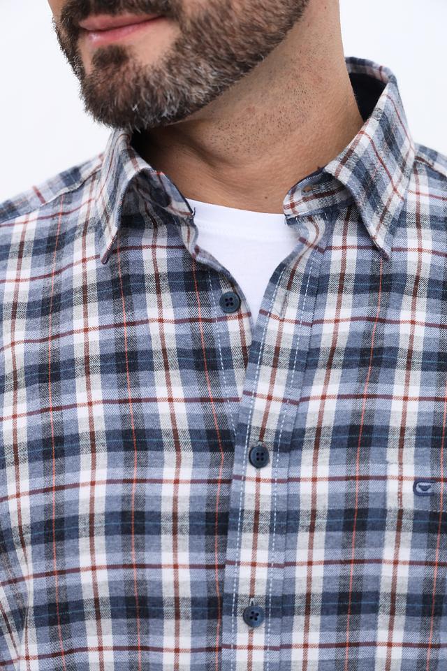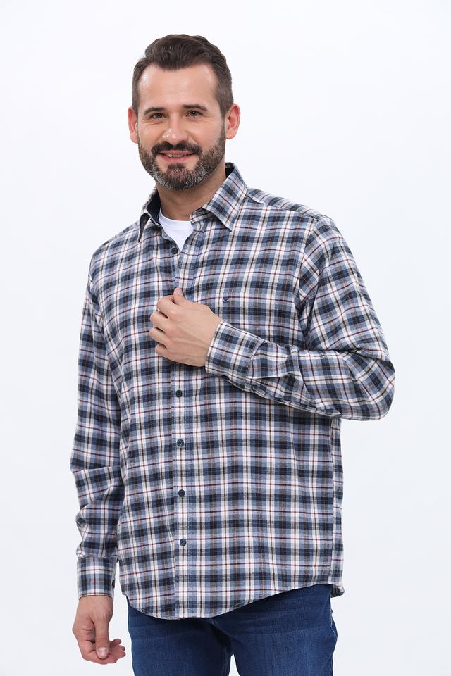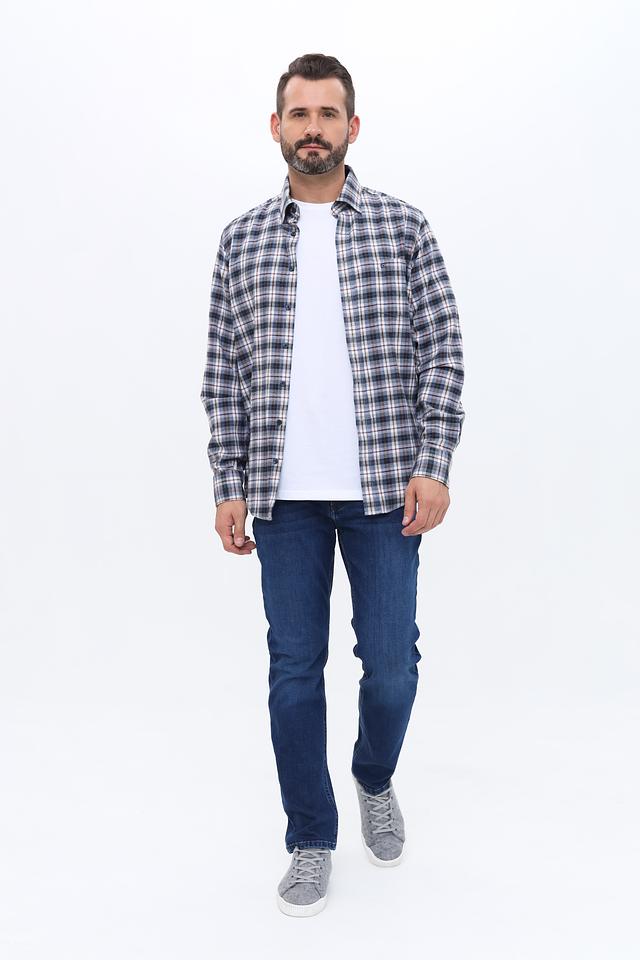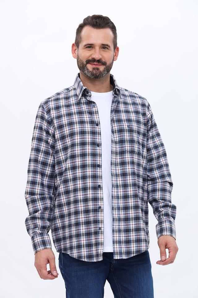 Эта рубашка от Casa Moda выполнена в клетку, сочетающую в себе оттенки синего, белого и коричневого. Классический крой и длинные рукава делают ее подходящей для любого времени года.