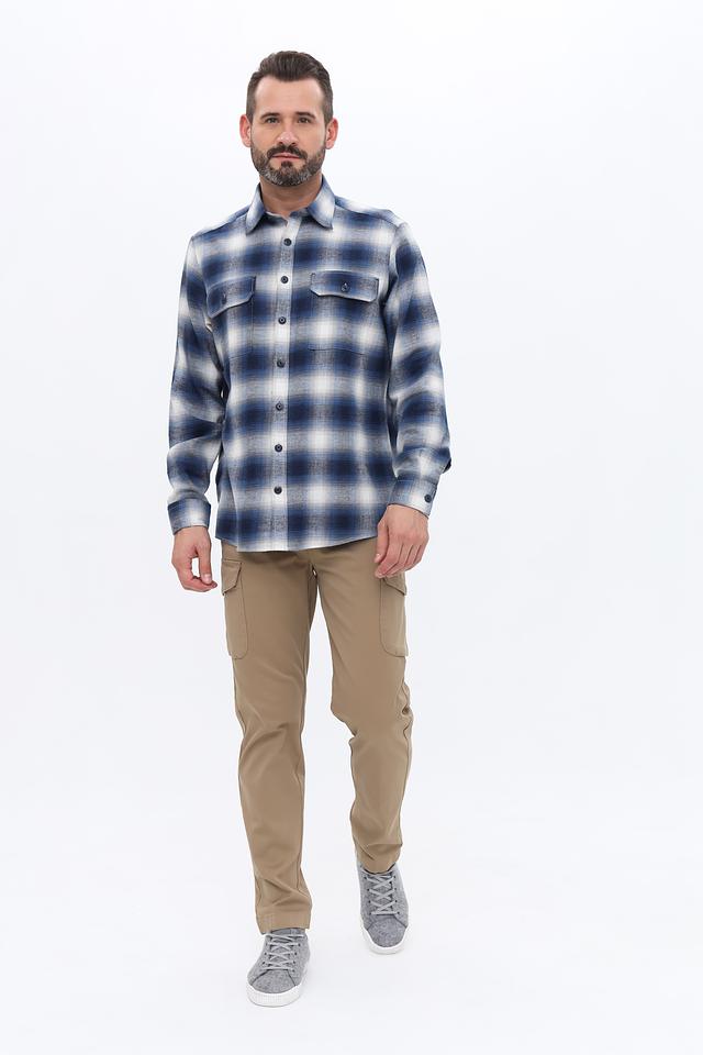 Рубашка с длинными рукавами и классическим воротником, застегивается на пуговицы. На груди расположены два функциональных нагрудных кармана с клапанами. Крой рубашки прямой, что обеспечивает комфортную посадку по фигуре.