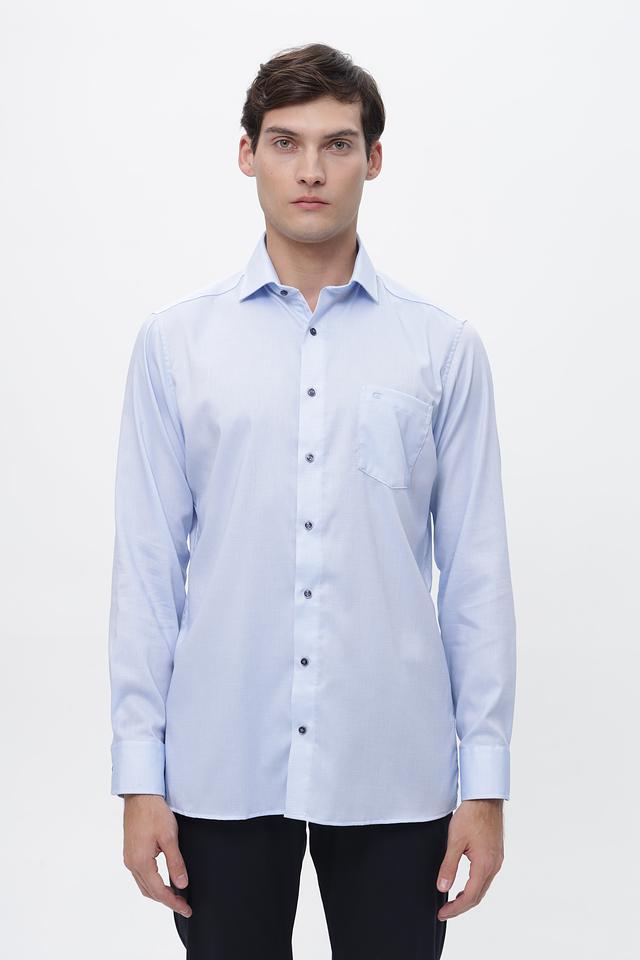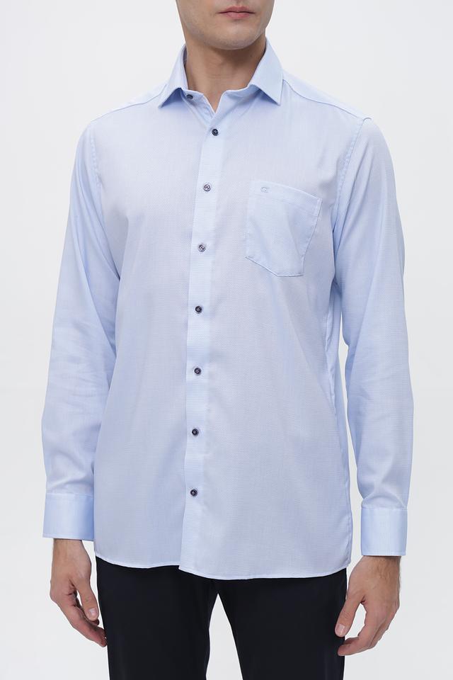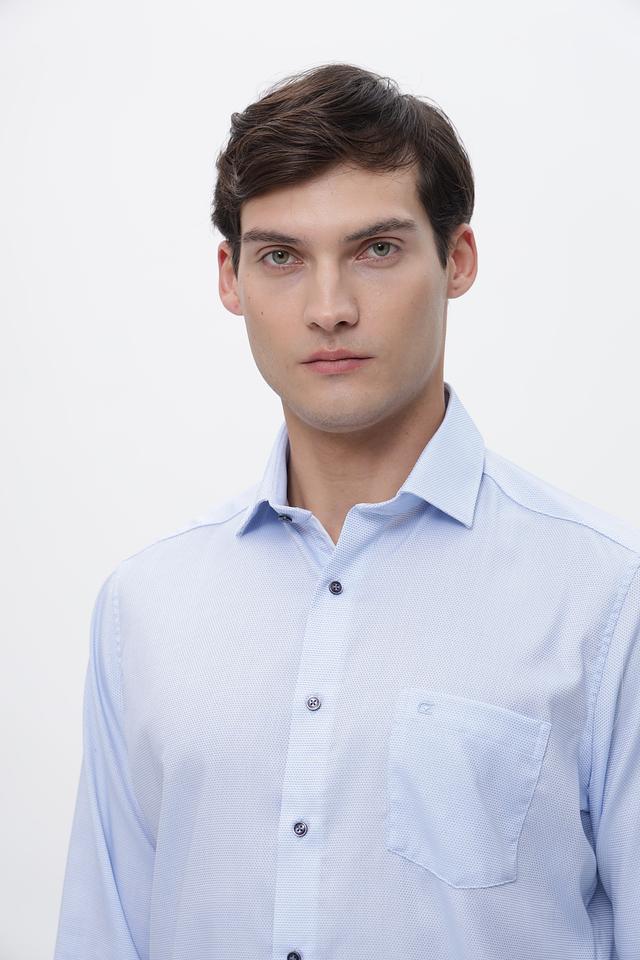 Эта рубашка от Casa Moda выполнена из высококачественного хлопка с добавлением эластана, что обеспечивает комфорт в носке и сохранение формы. Преобладающий цвет – светло-голубой, с мелким рисунком, придающим изделию элегантный вид.