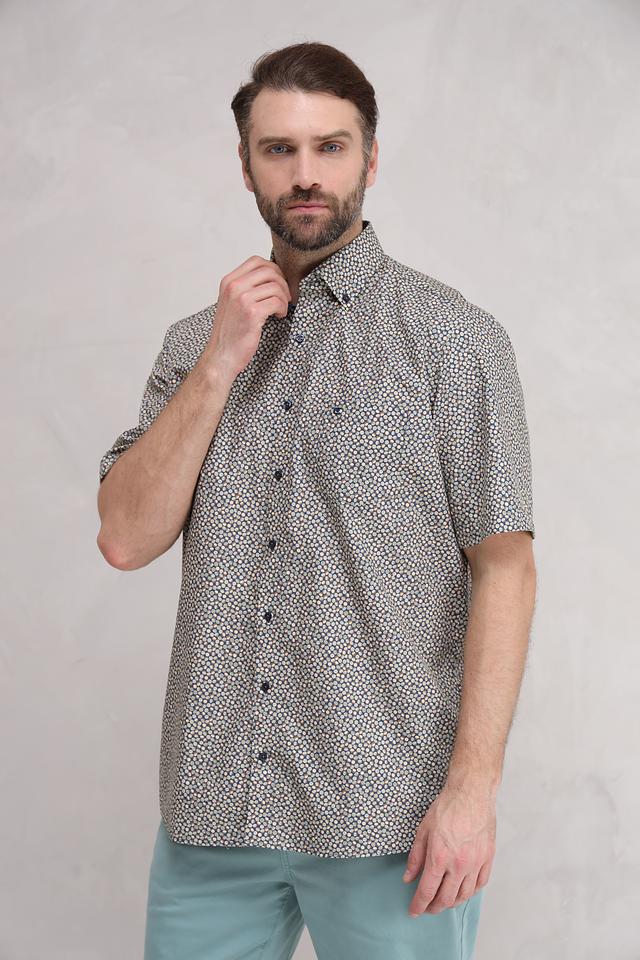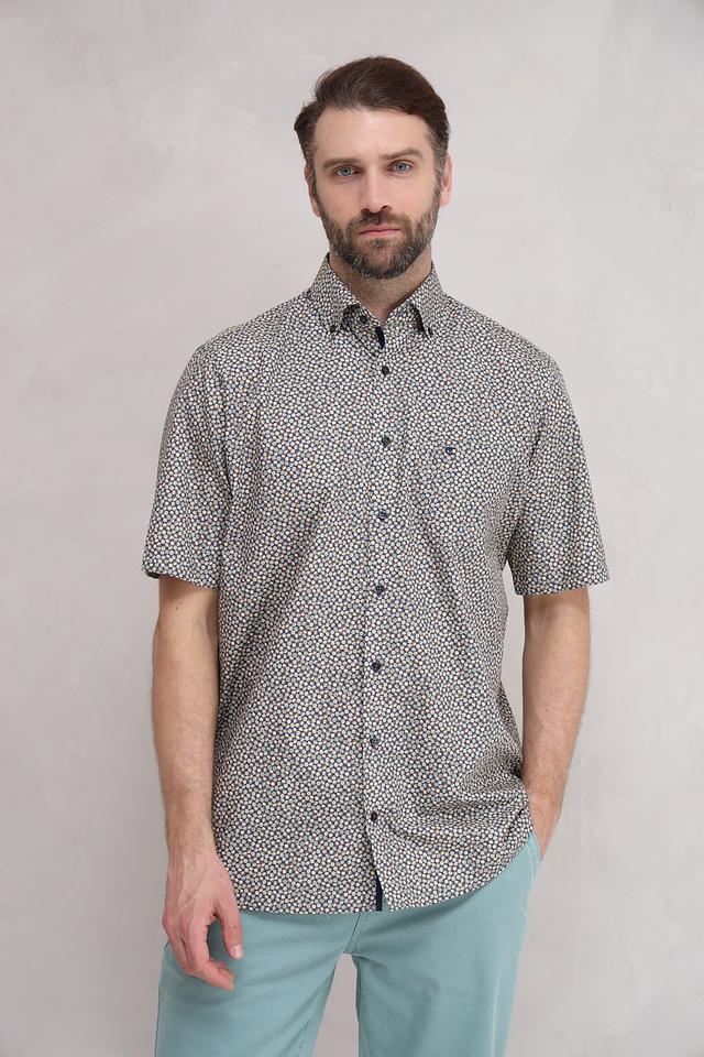 Мужская рубашка Casa Moda светло-серого цвета с коротким рукавом и оригинальным цветочным принтом. Изготовлена из 100% хлопка, обеспечивающего комфорт и воздухопроницаемость. Состав: хлопок 100%