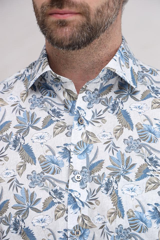 Мужская рубашка Casa Moda голубого цвета с ярким цветочным принтом. Изготовлена из хлопка с добавлением эластана для комфорта и лучшей посадки. Состав: хлопок 97%, эластан 3%