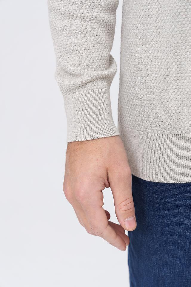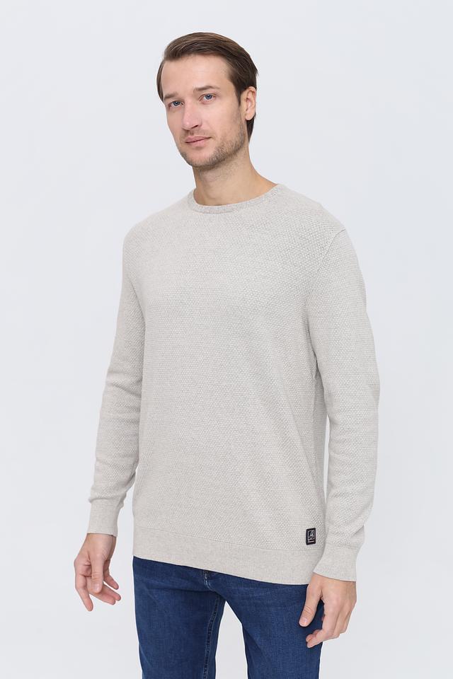 Джемпер имеет классический крой с круглым вырезом горловины и длинными рукавами. Текстурная вязка придает ему интересный вид и делает его более универсальным. Он прекрасно сочетается с джинсами, брюками чинос и другими элементами повседневного стиля.