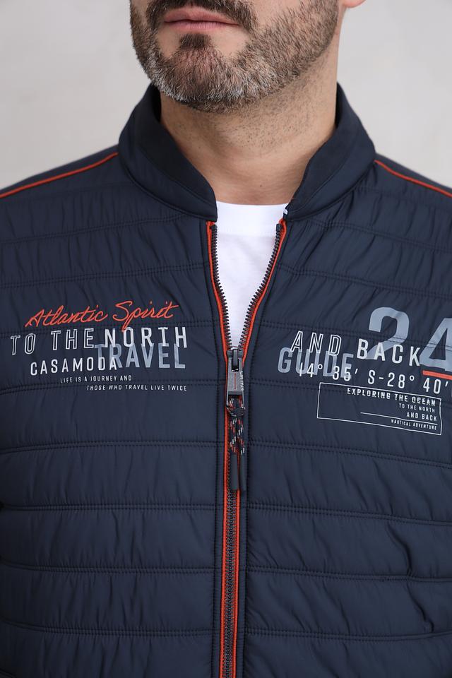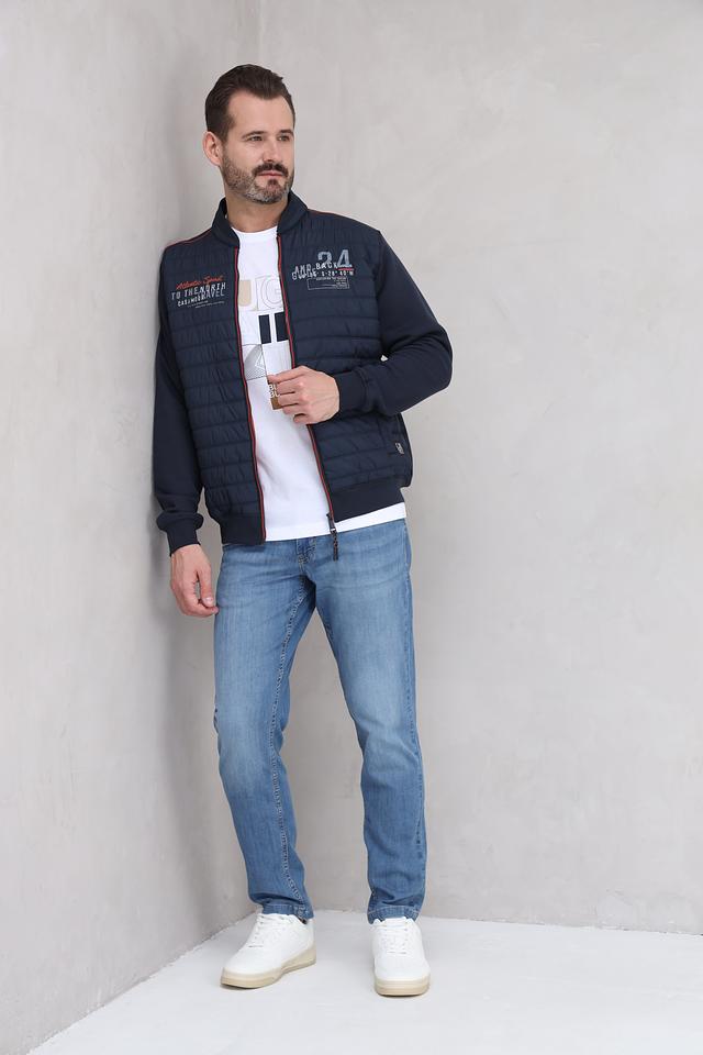 Стильный мужской кардиган Casa Moda синего цвета с контрастной отделкой. Модель выполнена из хлопка с добавлением полиэстера, имеет стеганую фактуру и удобную застежку-молнию. Состав: хлопок 70%, полиэстер 30%