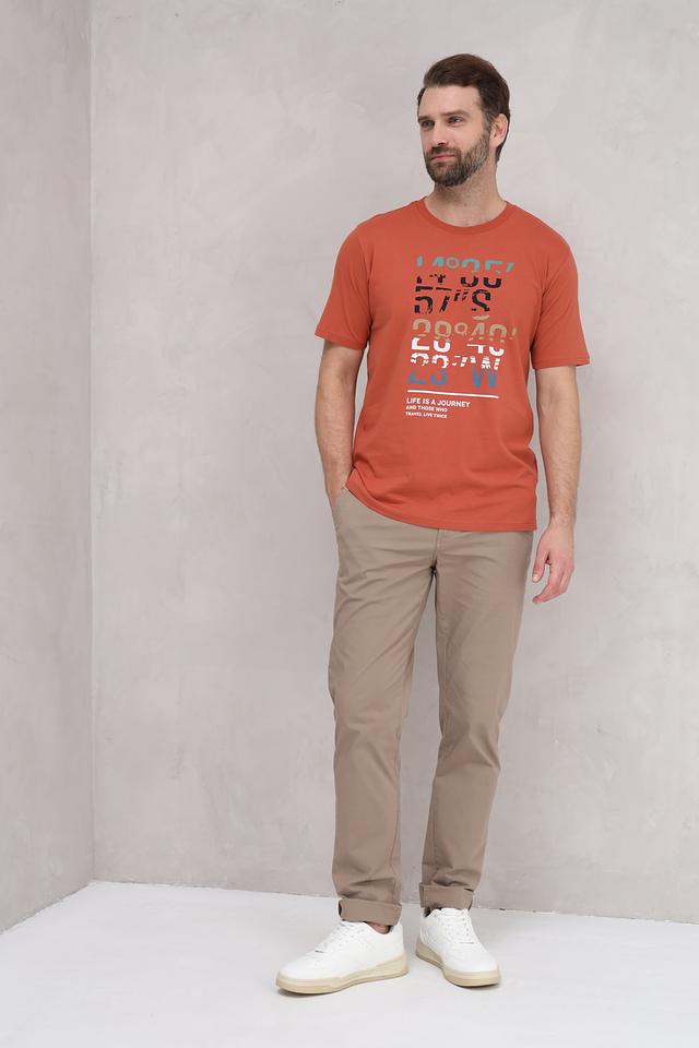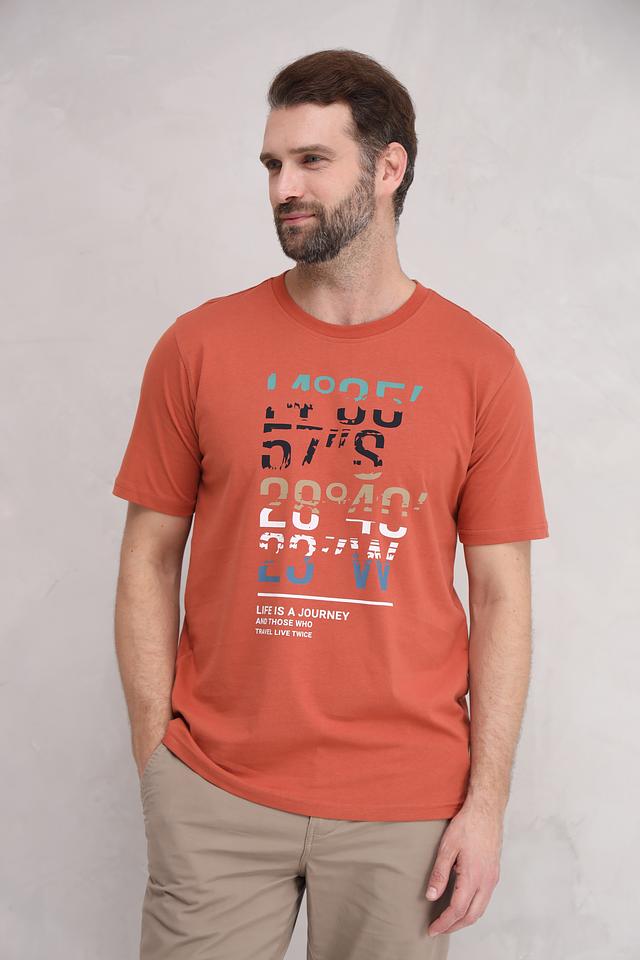 Мужская футболка Casa Moda терракотового цвета с ярким графичным принтом. Изготовлена из 100% хлопка, обеспечивающего комфорт и воздухопроницаемость. Стильный и удобный выбор для повседневного образа. Состав: хлопок 100%