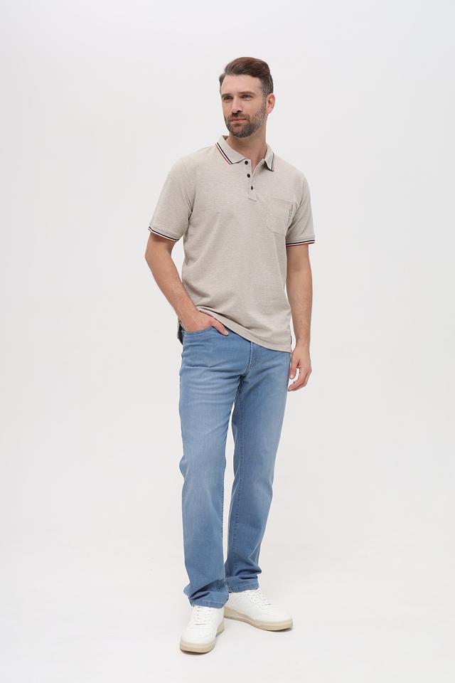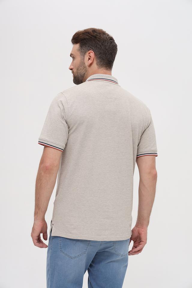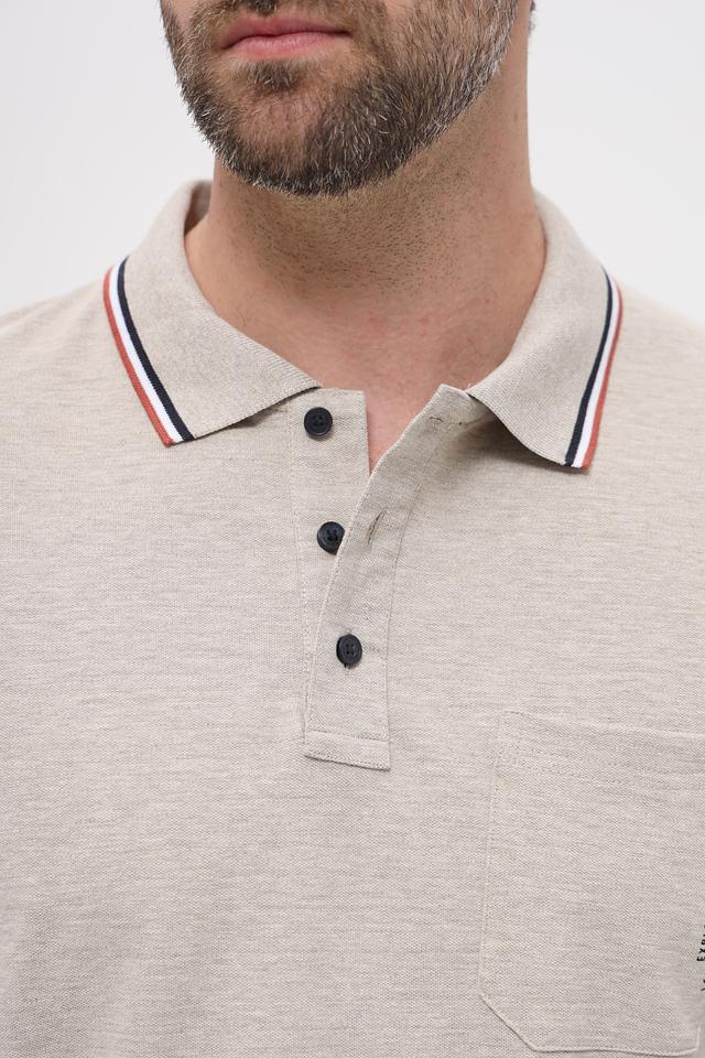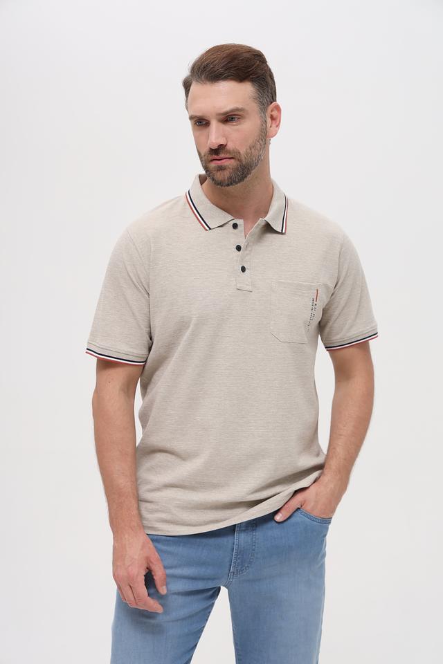 Мужское поло Casa Moda бежевого цвета с коротким рукавом и нагружным карманом. Классический крой и отделка воротника в тонкую полоску делают эту модель универсальной для повседневного гардероба. Состав: хлопок 95%, эластан 5%