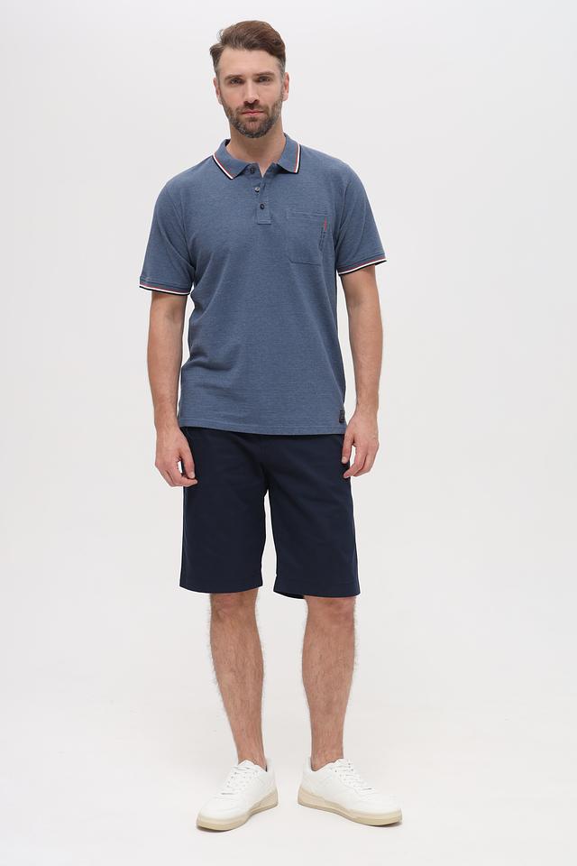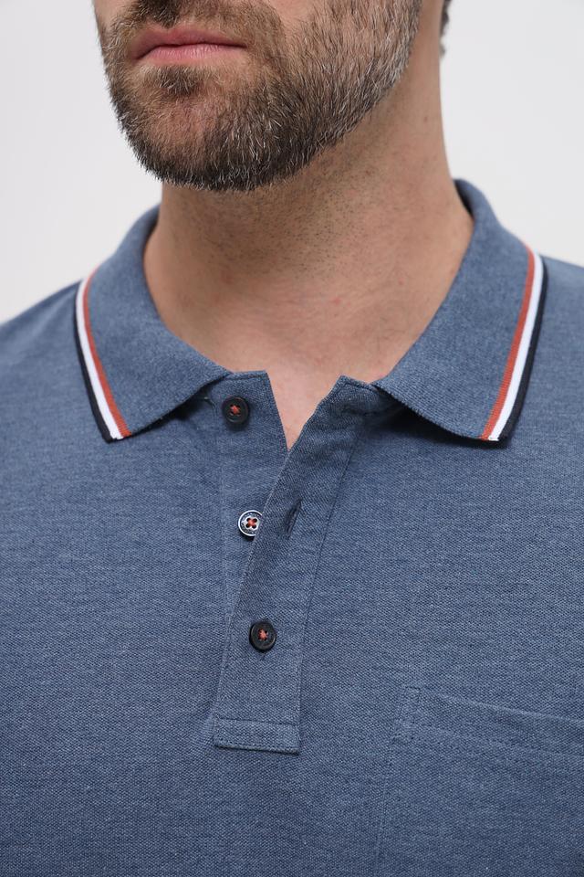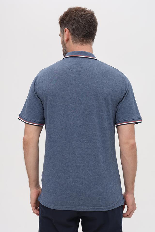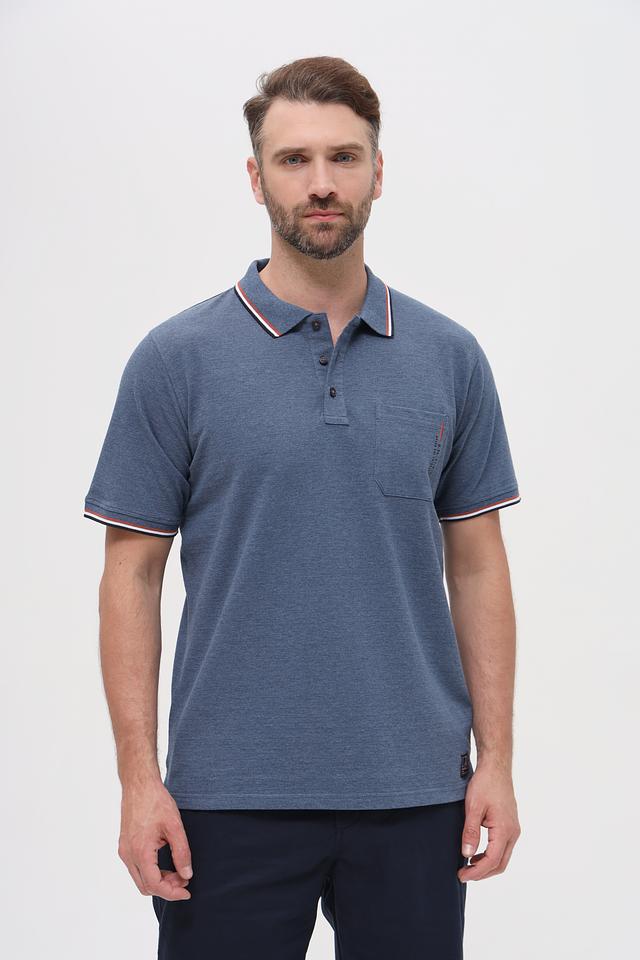 Мужское поло Casa Moda синего цвета с контрастной полоской на воротнике и рукавах. Изготовлено из мягкого хлопка с добавлением эластана для комфорта и свободы движений. Состав: хлопок 95%, эластан 5%