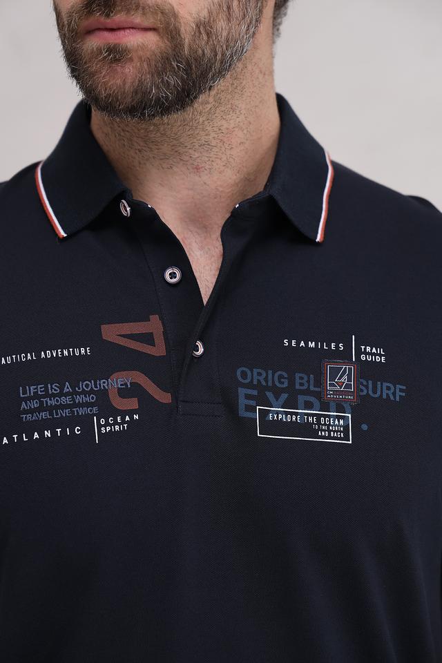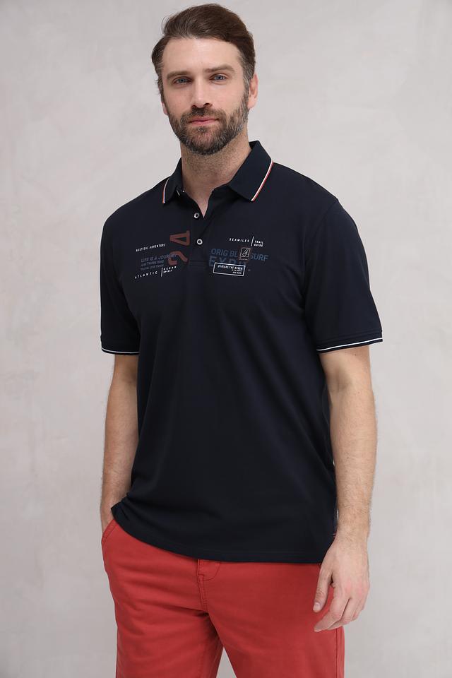 Чёрное поло от Casa Moda с оригинальным принтом и коротким рукавом. Изготовлено из мягкого хлопка с добавлением эластана для комфорта и свободы движений. Стильный и практичный выбор для повседневного гардероба. Состав: хлопок 95%, эластан 5%