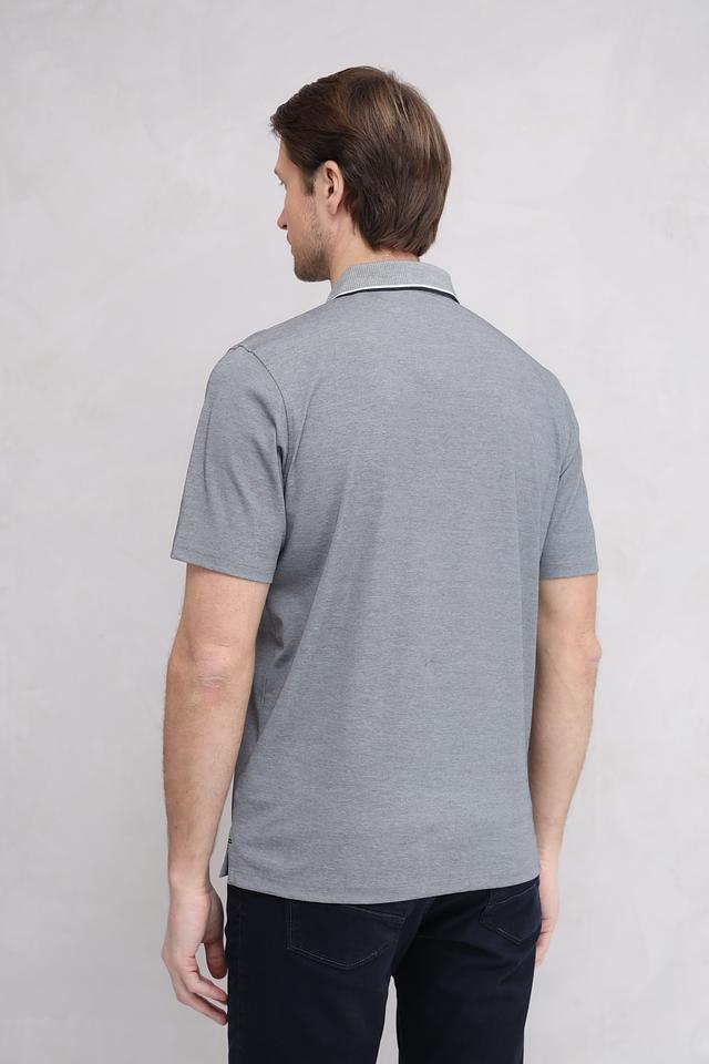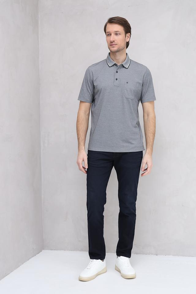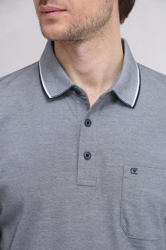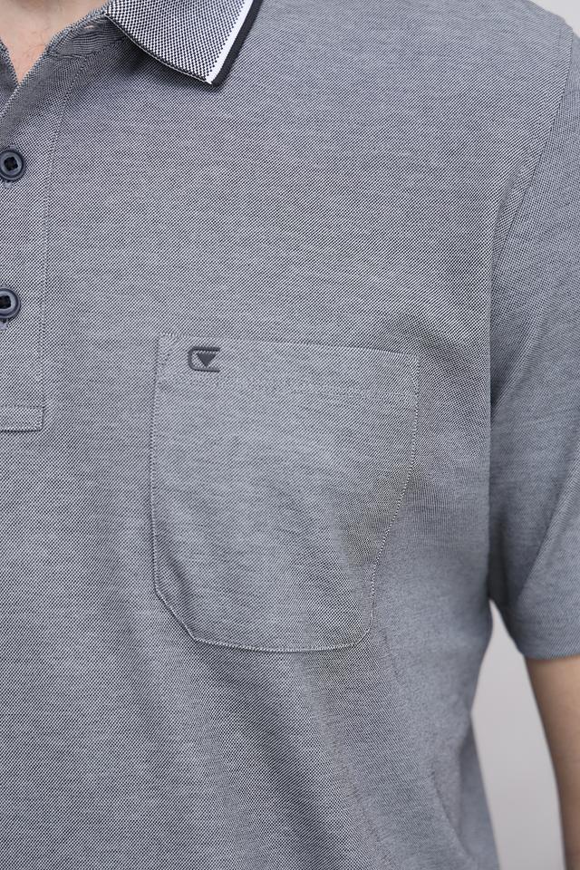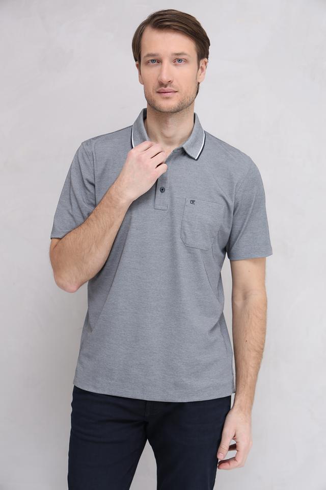 Серый мужской поло Casa Moda с коротким рукавом и оригинальным дизайном. Изготовлено из хлопка с добавлением полиэстера для комфорта и долговечности. Отличается стильным воротником с белой полоской. Состав: хлопок 55%, полиэстер 45%