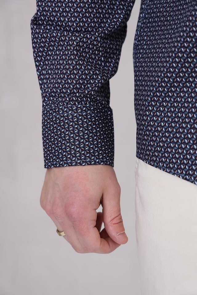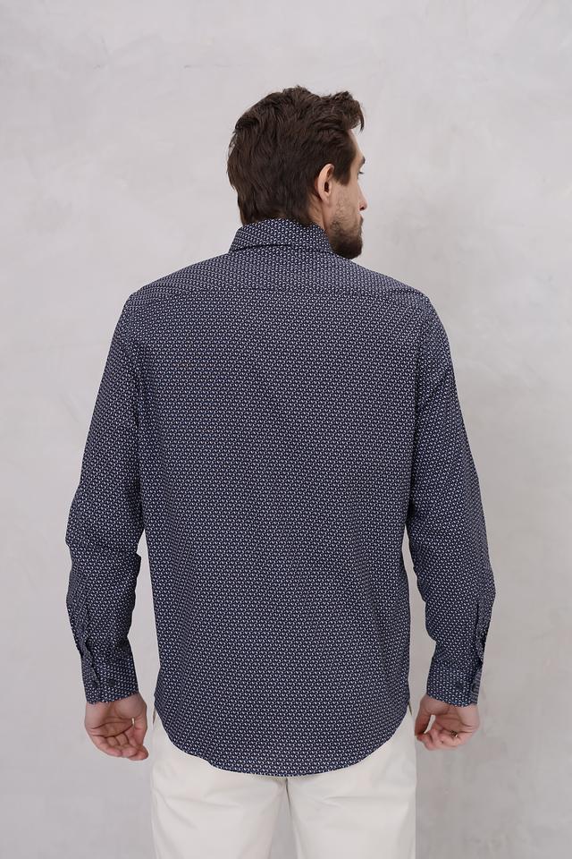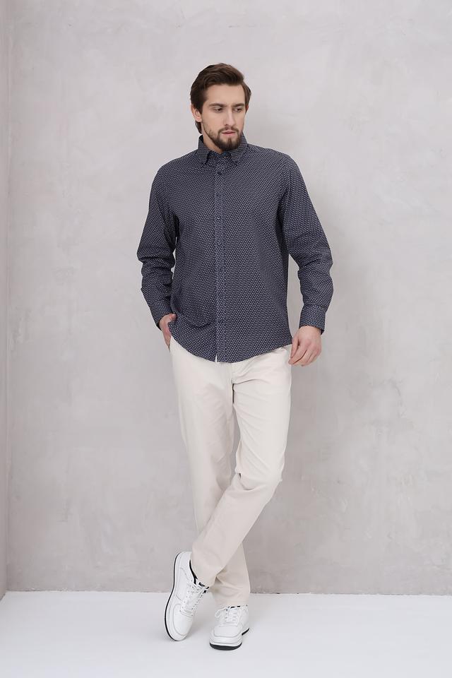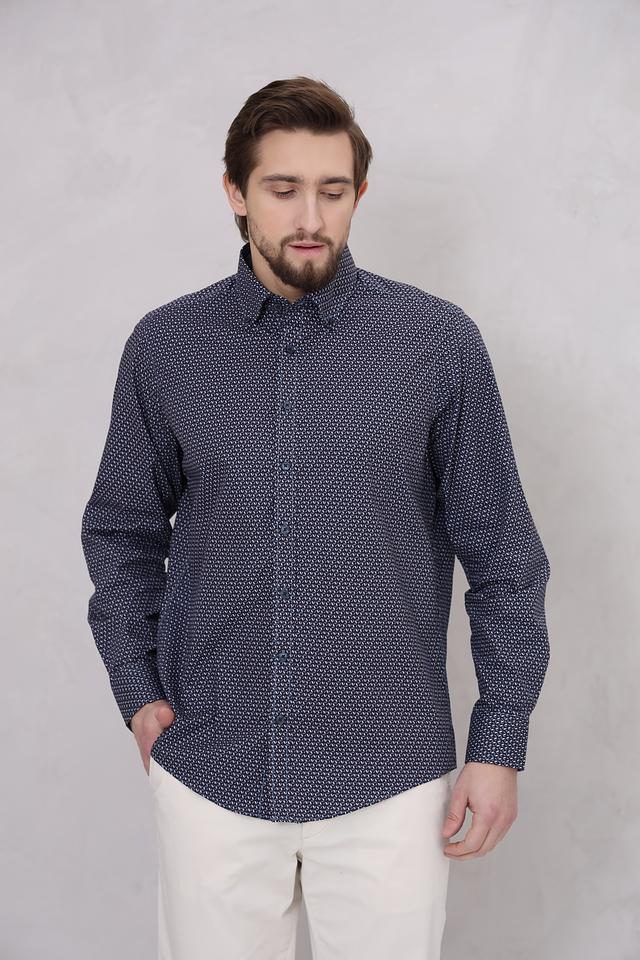 Мужская рубашка Casa Moda темно-синего цвета с мелким геометрическим принтом. Классический крой и длинные рукава делают эту рубашку универсальным элементом гардероба. Изготовлена из 100% хлопка, обеспечивающего комфорт в носке. Состав: хлопок 100%