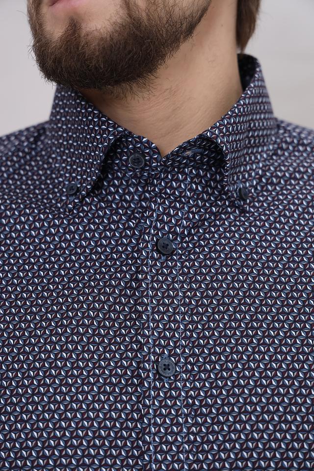 Эта рубашка от Casa Moda – отличный выбор для создания стильного и комфортного образа. Выполнена в темно-синем цвете с мелким геометрическим принтом, который придает ей изысканность.