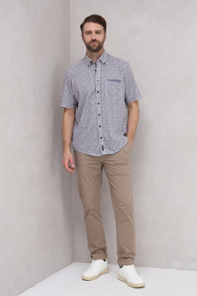 Мужская рубашка Casa Moda голубого цвета с коротким рукавом, выполнена с оригинальным принтом. Изготовлена из 100% хлопка, обеспечивающего комфорт и воздухопроницаемость. Отличный выбор для создания стильного повседневного образа. Состав: хлопок 100%