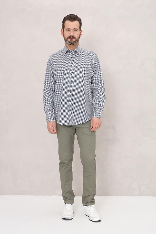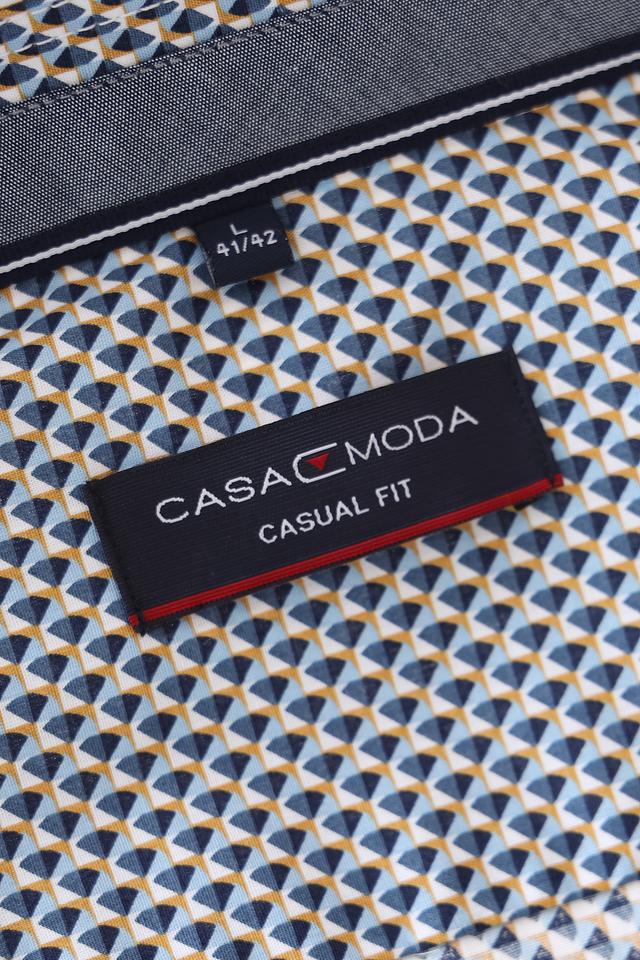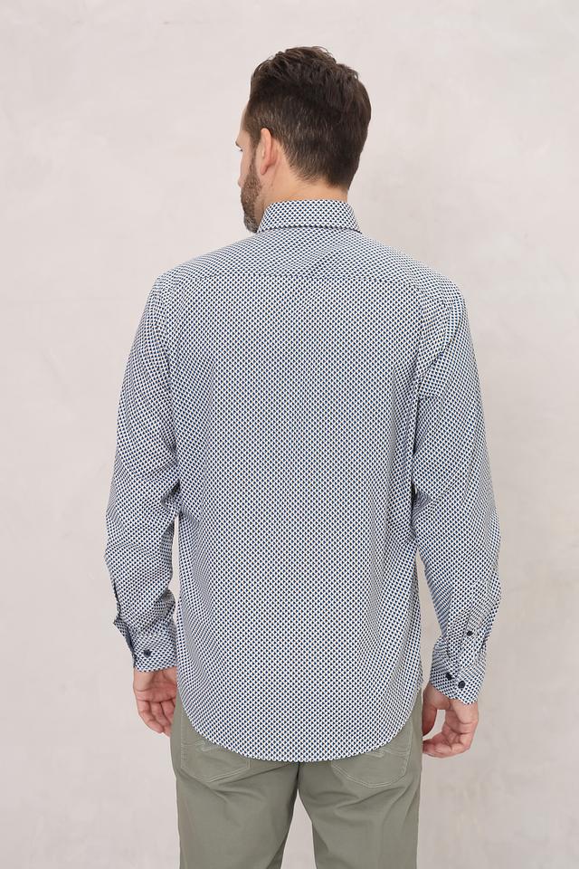 Мужская рубашка Casa Moda синего цвета с мелким геометрическим принтом. Классический крой и 100% хлопковый состав обеспечивают комфорт и удобство в носке. Состав: хлопок 100%