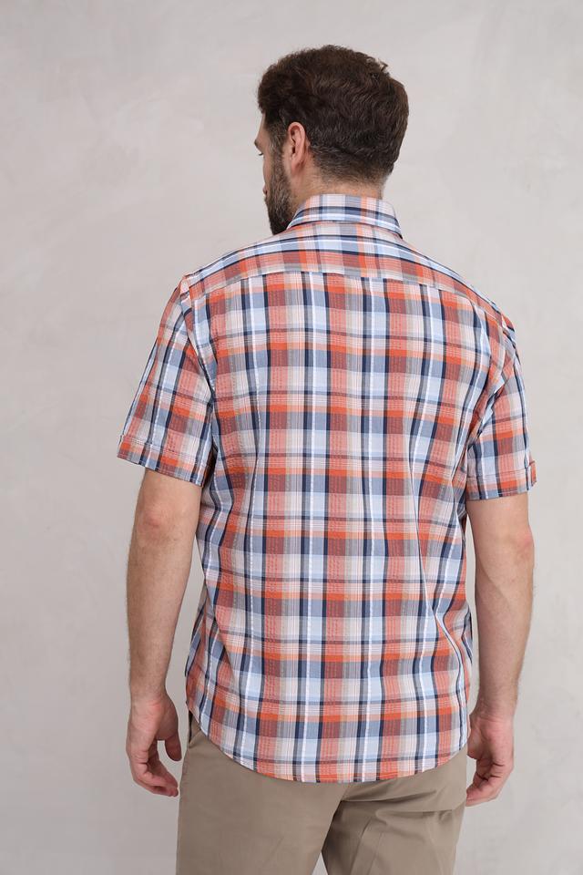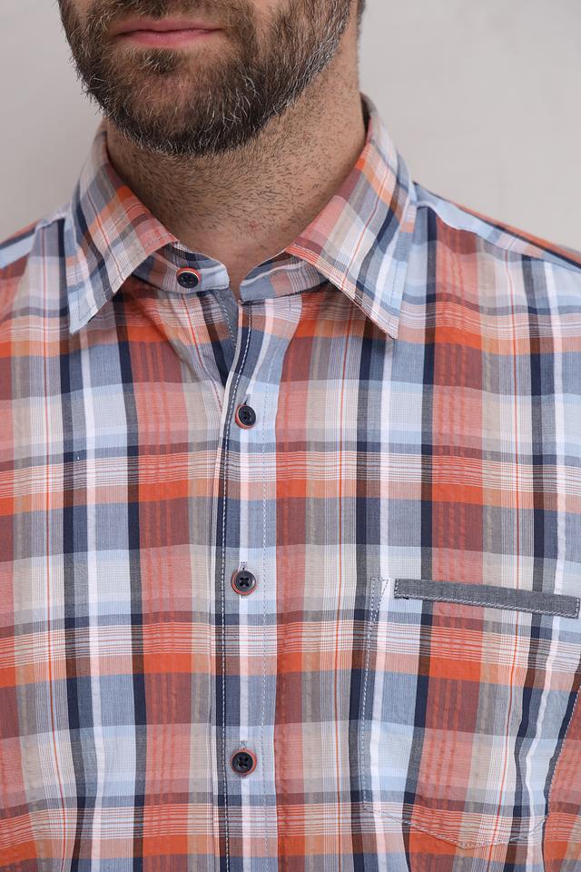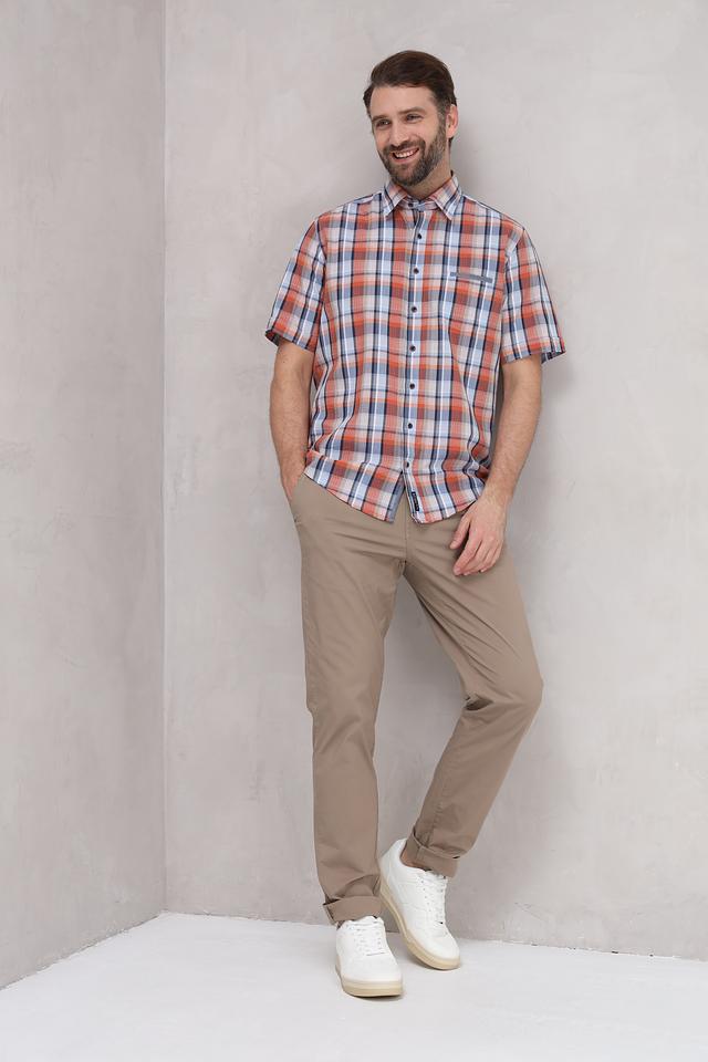 Мужская рубашка Casa Moda оранжево-голубой расцветки с коротким рукавом. Изготовлена из 100% хлопка, обеспечивающего комфорт и воздухопроницаемость. Отличный выбор для повседневного образа. Состав: хлопок 100%