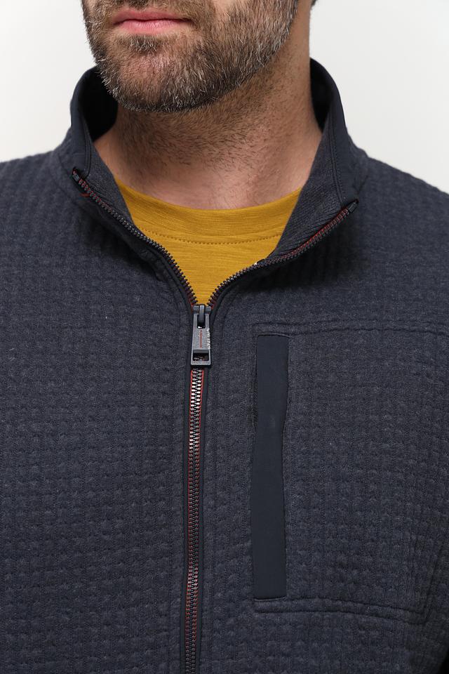 Кардиган имеет удобную застежку-молнию, а также небольшие боковые карманы. Декоративные красные вставки вдоль молнии добавляют акцент и подчеркивают индивидуальность изделия. Высокий воротник-стойка защищает от ветра и холода.