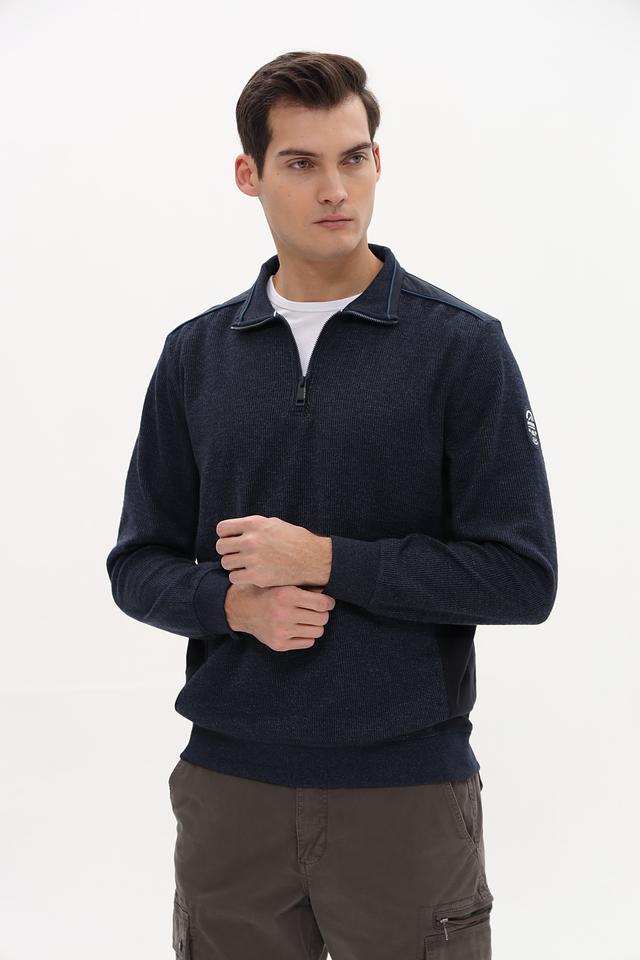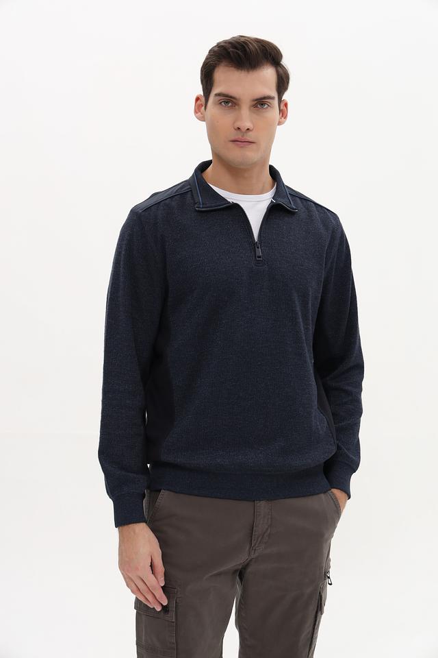 Мужской джемпер Casa Moda темно-синего цвета с воротником-стойкой и короткой молнией. Изготовлен из мягкого и приятного к телу сочетания хлопка и полиэстера, обеспечивающего комфорт и практичность. Состав: хлопок 70%, полиэстер 30%