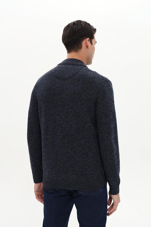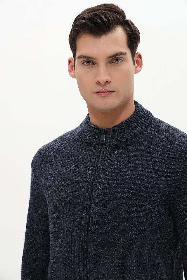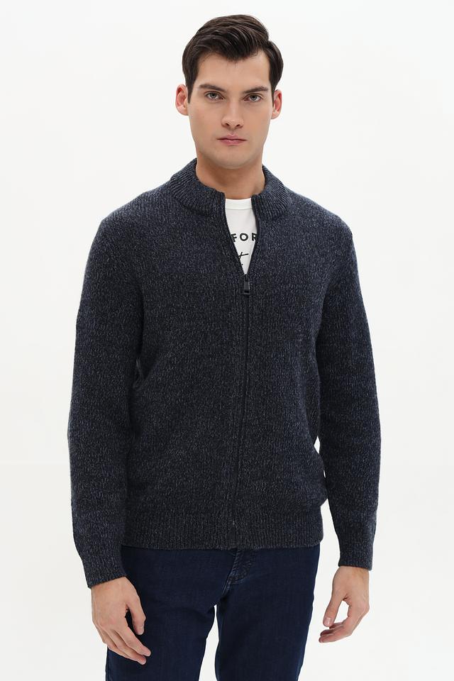 Мужской кардиган Casa Moda тёмно-синего цвета выполнен из мягкой пряжи с добавлением полиамида. Модель на молнии с воротником-стойкой и фактурной вязкой станет отличным дополнением к вашему гардеробу. Состав: шерсть 80%, полиамид 20%