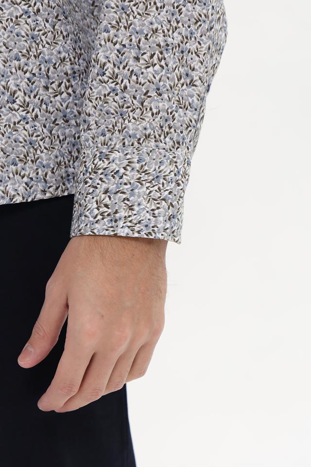 Особенностью данной модели является яркий и стильный цветочный принт, который придает ей индивидуальность и свежий вид. Сочетание голубого фона с мелкими цветочными элементами делает эту рубашку отличным выбором для создания непринужденного, но элегантного образа.
