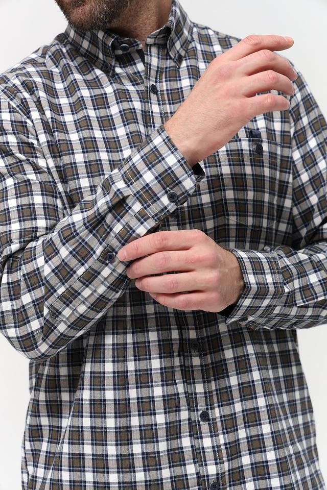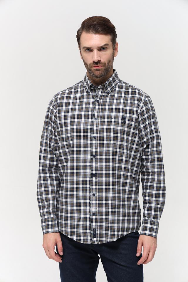 Мужская рубашка Casa Moda оливкового и белого цвета в классическую клетку. Изготовлена из 100% хлопка, обеспечивающего комфорт и воздухопроницаемость. Отличный выбор для создания повседневного образа. Состав: хлопок 100%