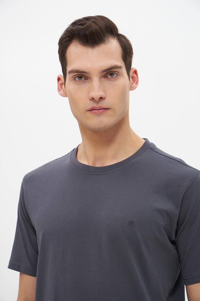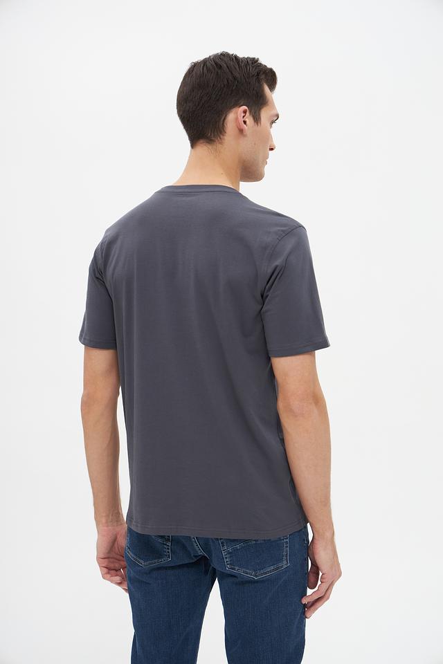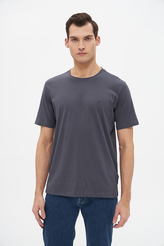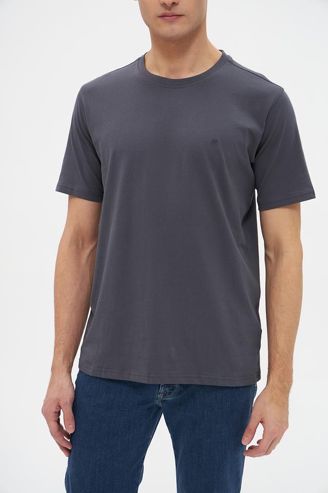 Цвет футболки – серый, спокойный и универсальный, легко сочетается с другими элементами одежды. Минималистичный дизайн дополнен небольшим логотипом бренда на груди. Круглый вырез горловины и короткие рукава обеспечивают комфорт в теплую погоду.